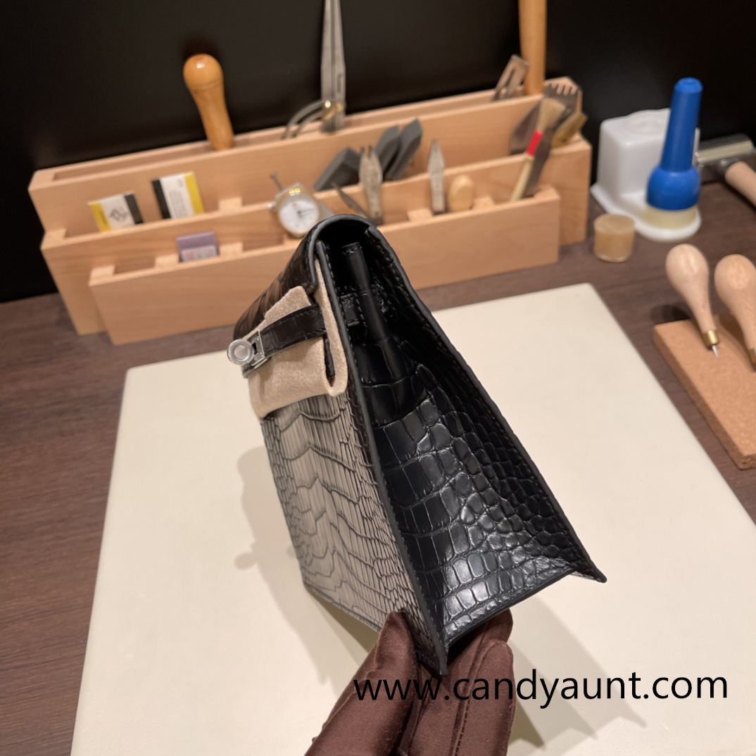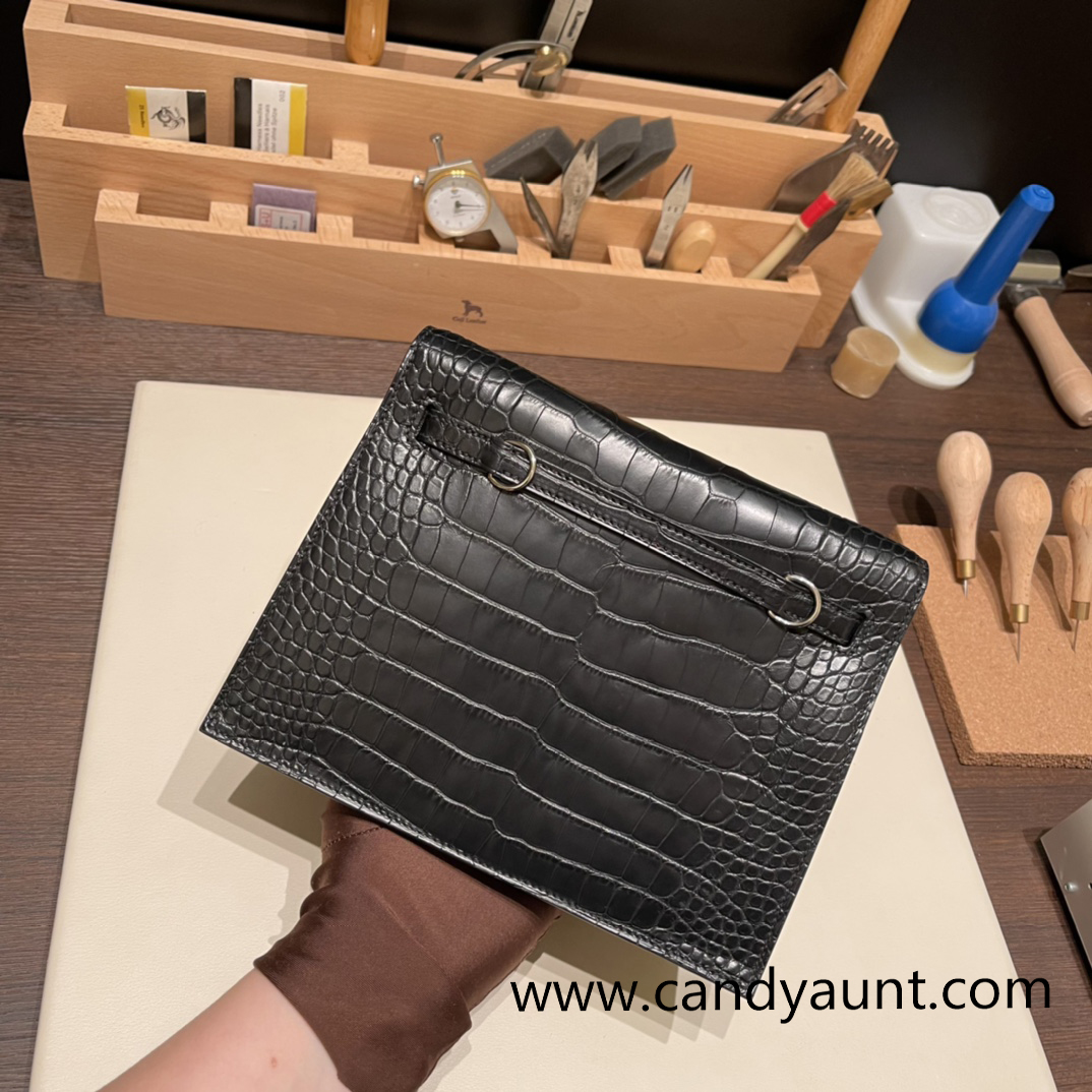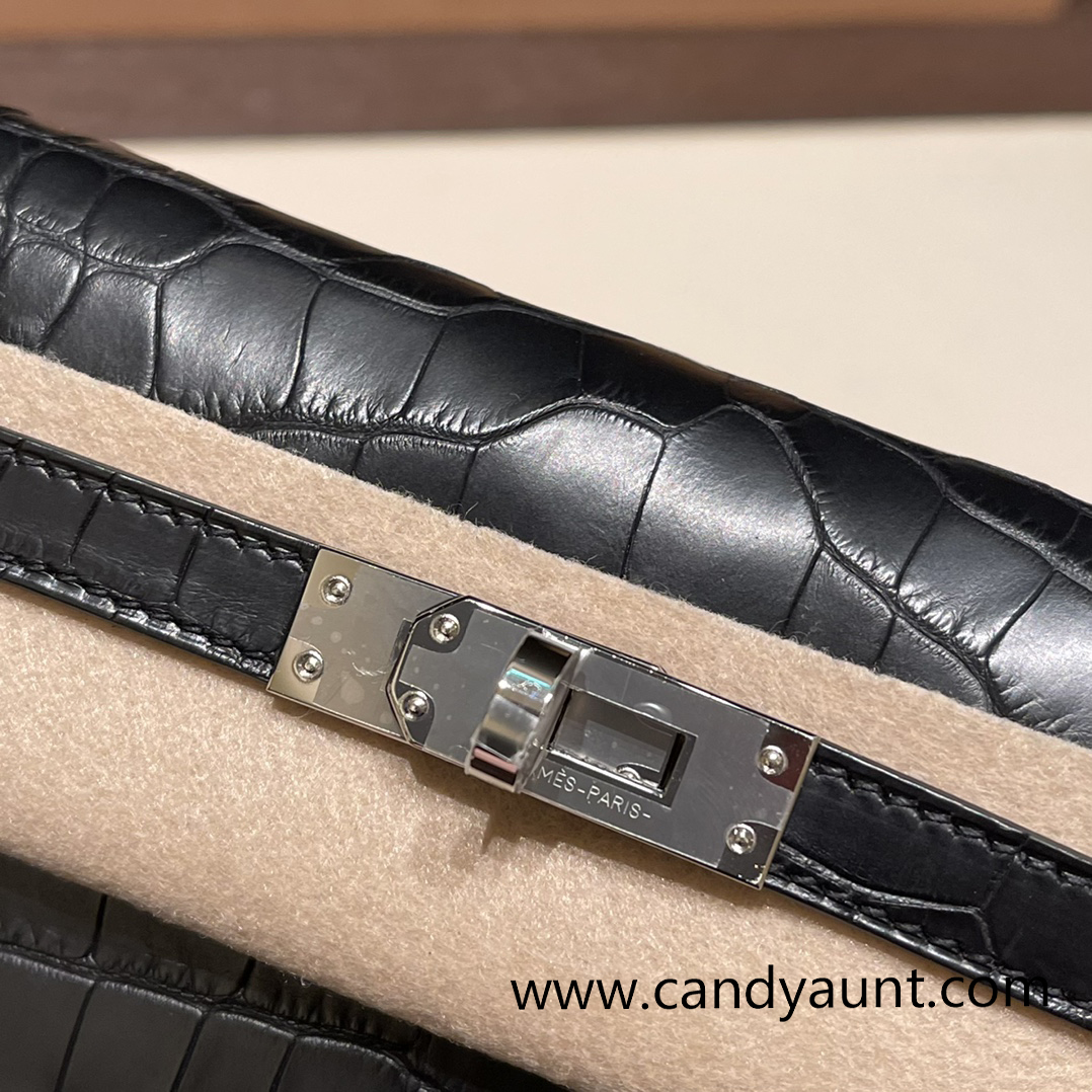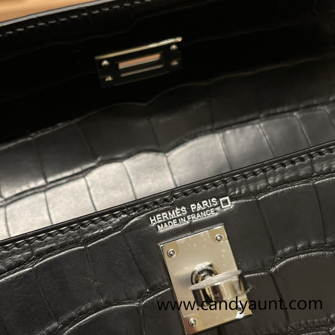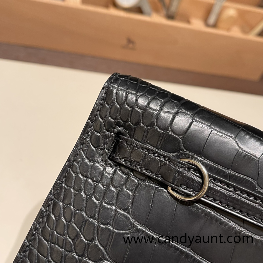 Hermes Kelly danse Matte Alligator Crocodile 89 /Black Silver Hardware