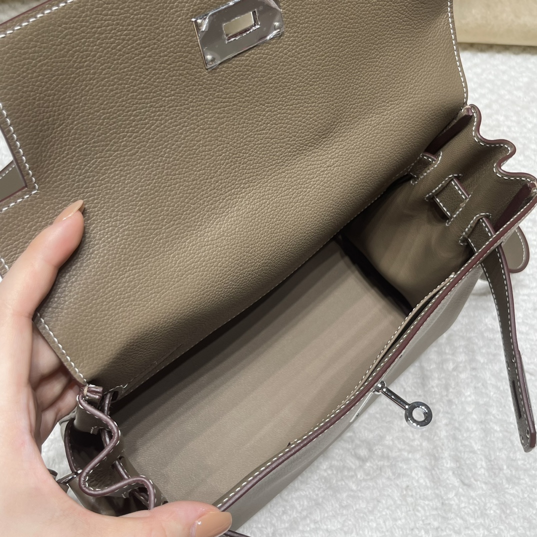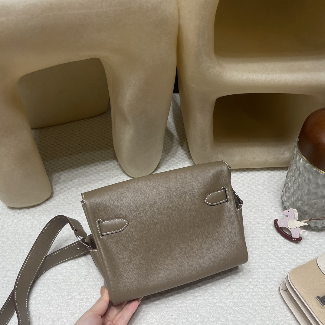 本日ご紹介する「ケリー メッセンジャー ポストマンバッグ」は、エルメスの新進人気モデルで、通常のケリーバッグよりカジュアルな雰囲気を漂わせます。左右の小ポケットと大容量スペースで日常用品を整然と収納可能で、男女兼用のニュートラルデザインは女性が「クール」にスタイリングできます。柔らかな質感の「Evercolor エバーカラー」素材を採用し、人気のエトゥープカラーに銀色金具がハイライトを加え、ビジネスからレジャーまで幅広いシーンで活躍する次世代の定番アイテムです。