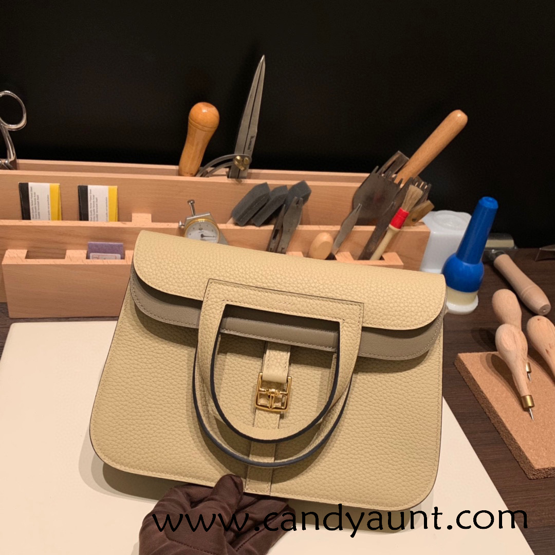 25cm Halzan CLEMENCE TC S2 Trench & 18/Étoupe Grey Gold Hardware Full Handmade