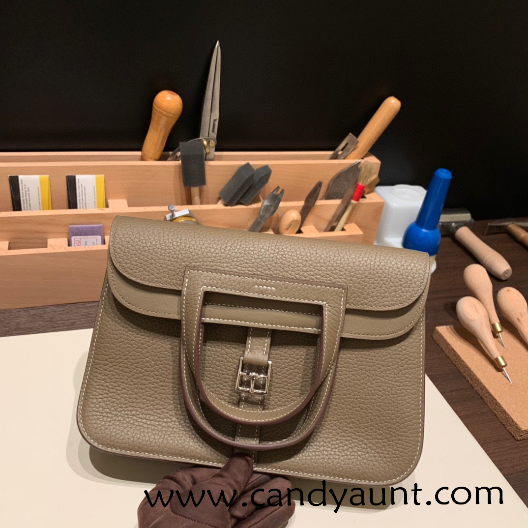 25cm Halzan CLEMENCE TC 18/Étoupe Grey Silver Hardware Full Handmade
