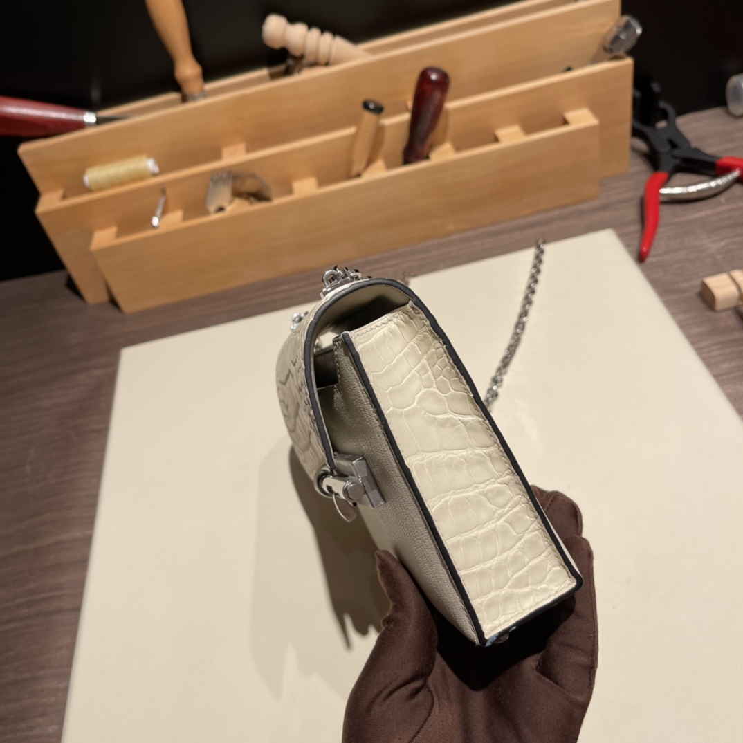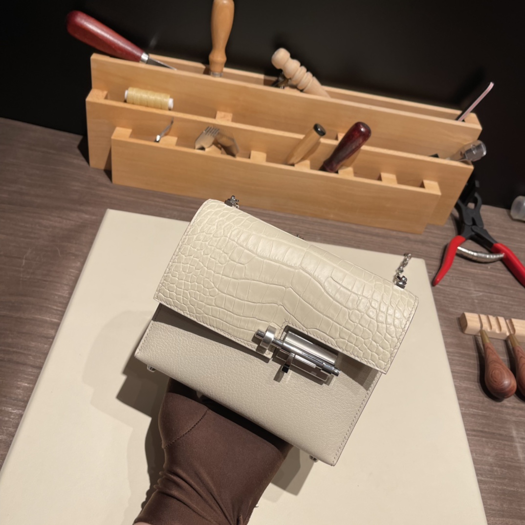 Hermès Verrou Mini 17cm Crocodile 8L/Beton (Béton) Silver Hardware Verrou-016 Fully Hand-Stitched