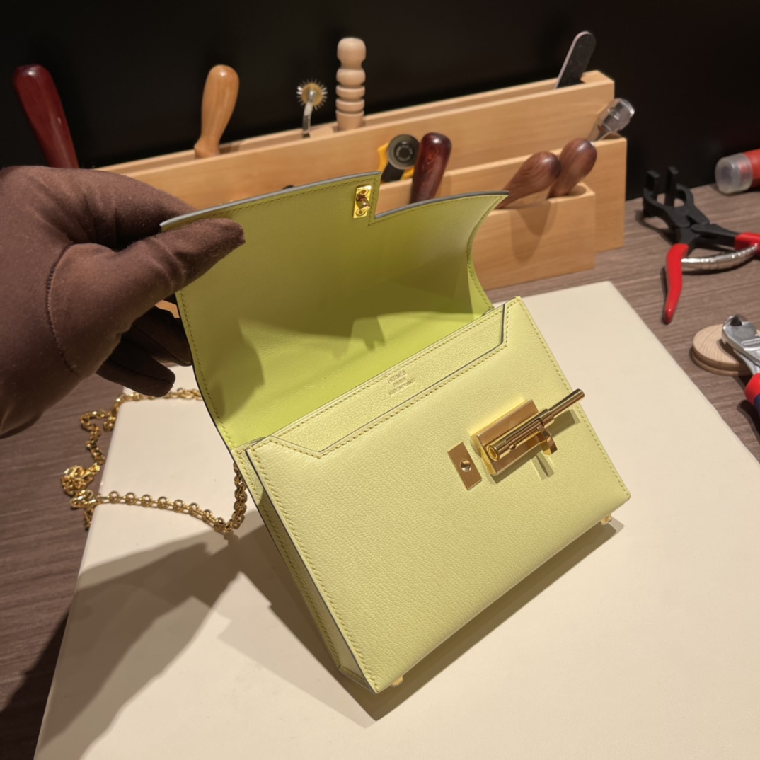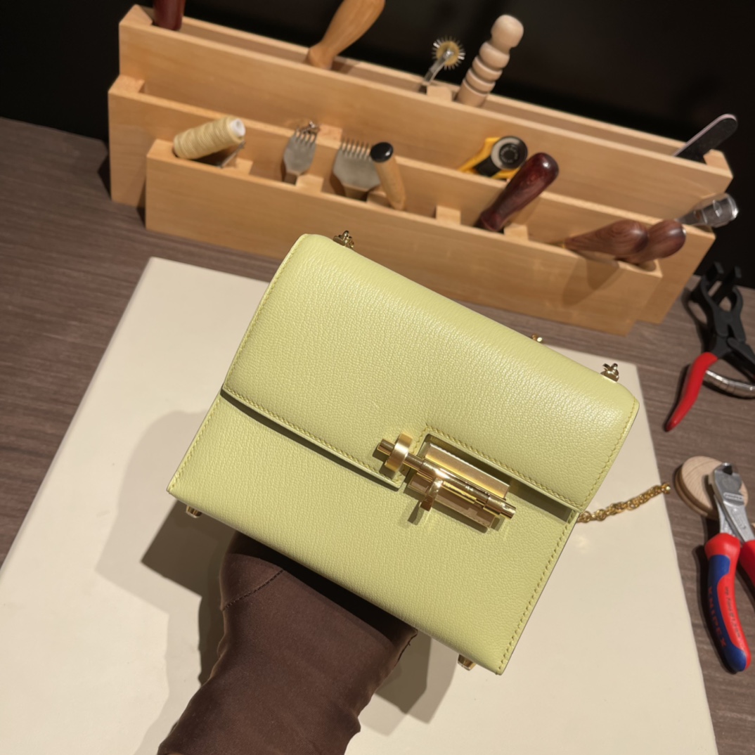 Hermès Verrou Mini 17cm Chevre Mysore R9/Jaune Bourgeon Gold Hardware Verrou-018 Fully Hand-Stitched
