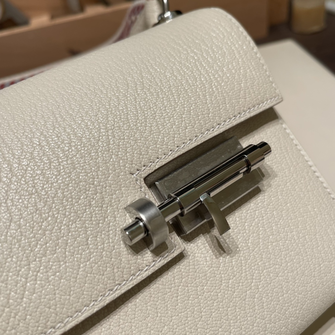 Hermès Verrou Mini 17cm Chevre Mysore 10/Craie Silver Hardware Verrou-020 Fully Hand-Stitched