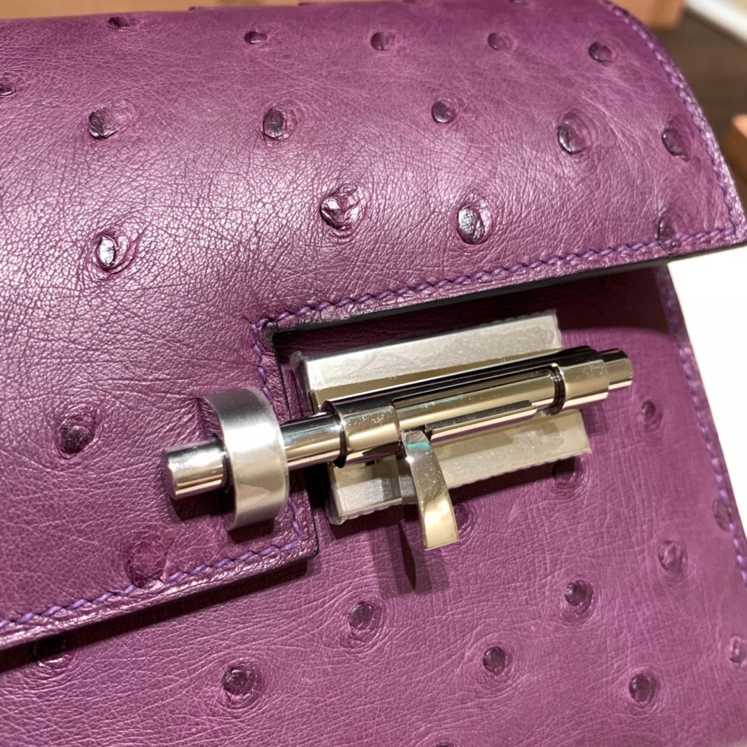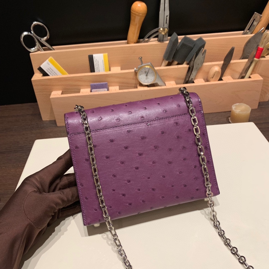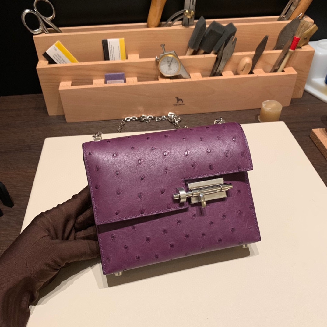 Hermès Verrou Mini 17cm Ostrich P9/Anemone Silver Hardware Verrou-021 Fully Hand-Stitched