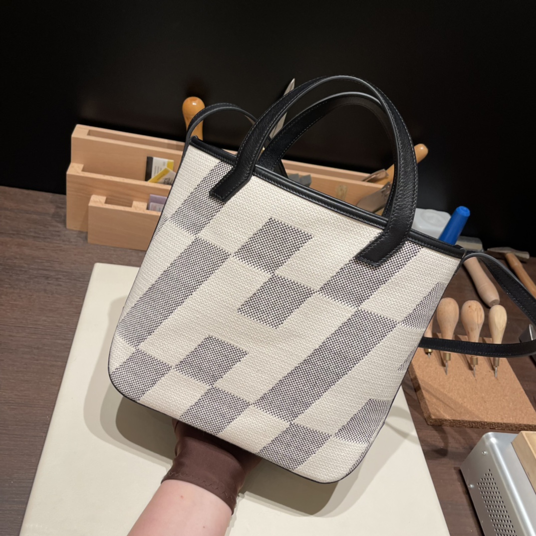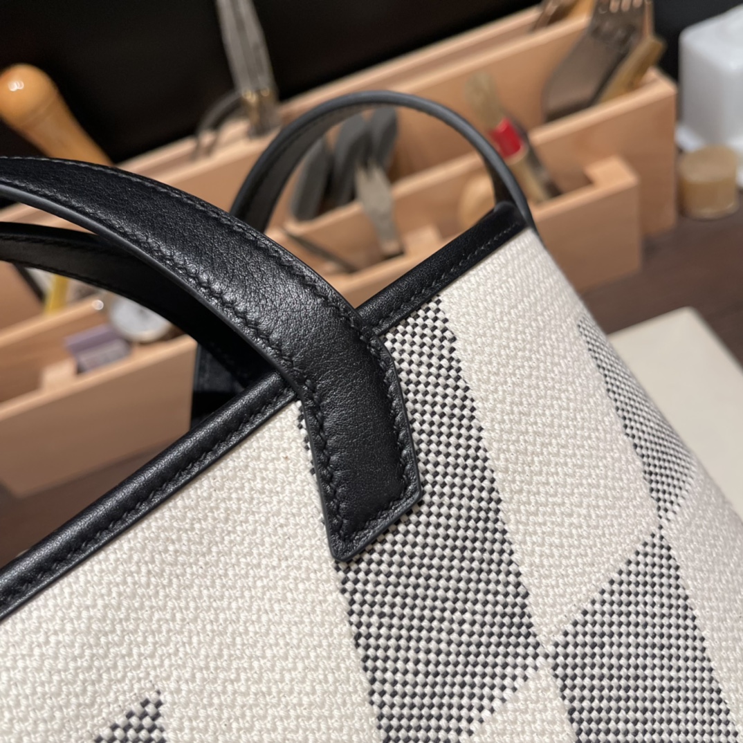 Hermès Cabas H En Biais 27cm Twill Ash/Swift 89/Black (Noir) Biais27-093 Fully Hand-Stitched