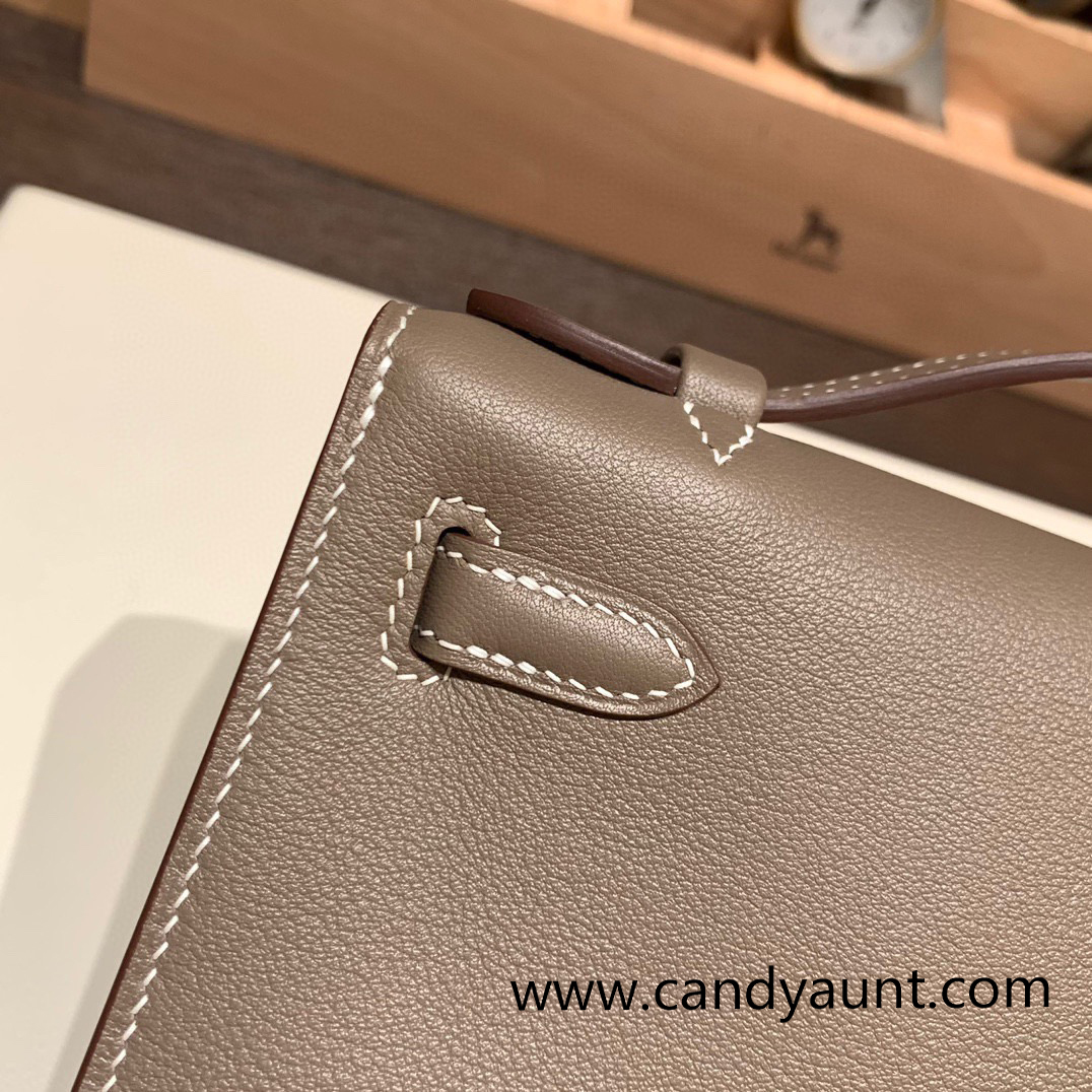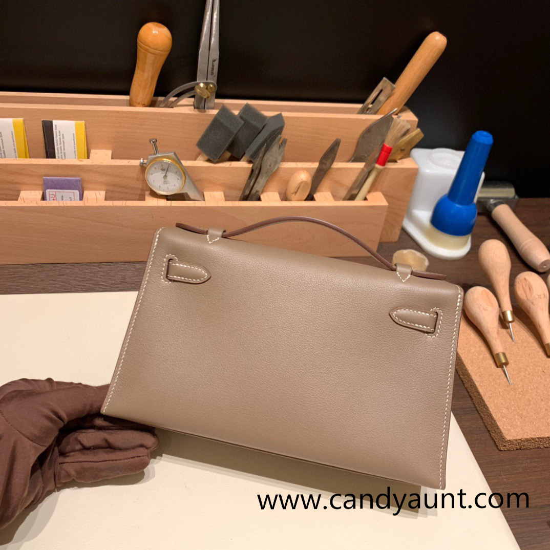 18 /Étoupe Grey (Étoupe) Silver Hardware 全手縫いkelly pochette swift