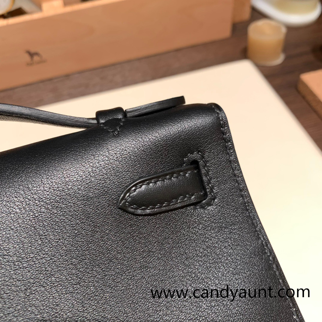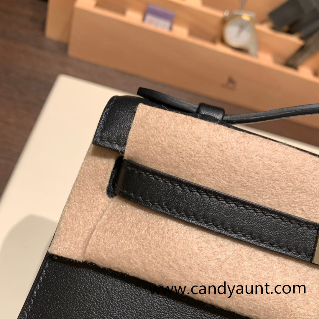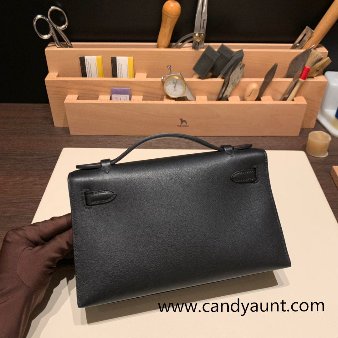 89/ Black (Noir) Silver Hardware kelly pochette swift