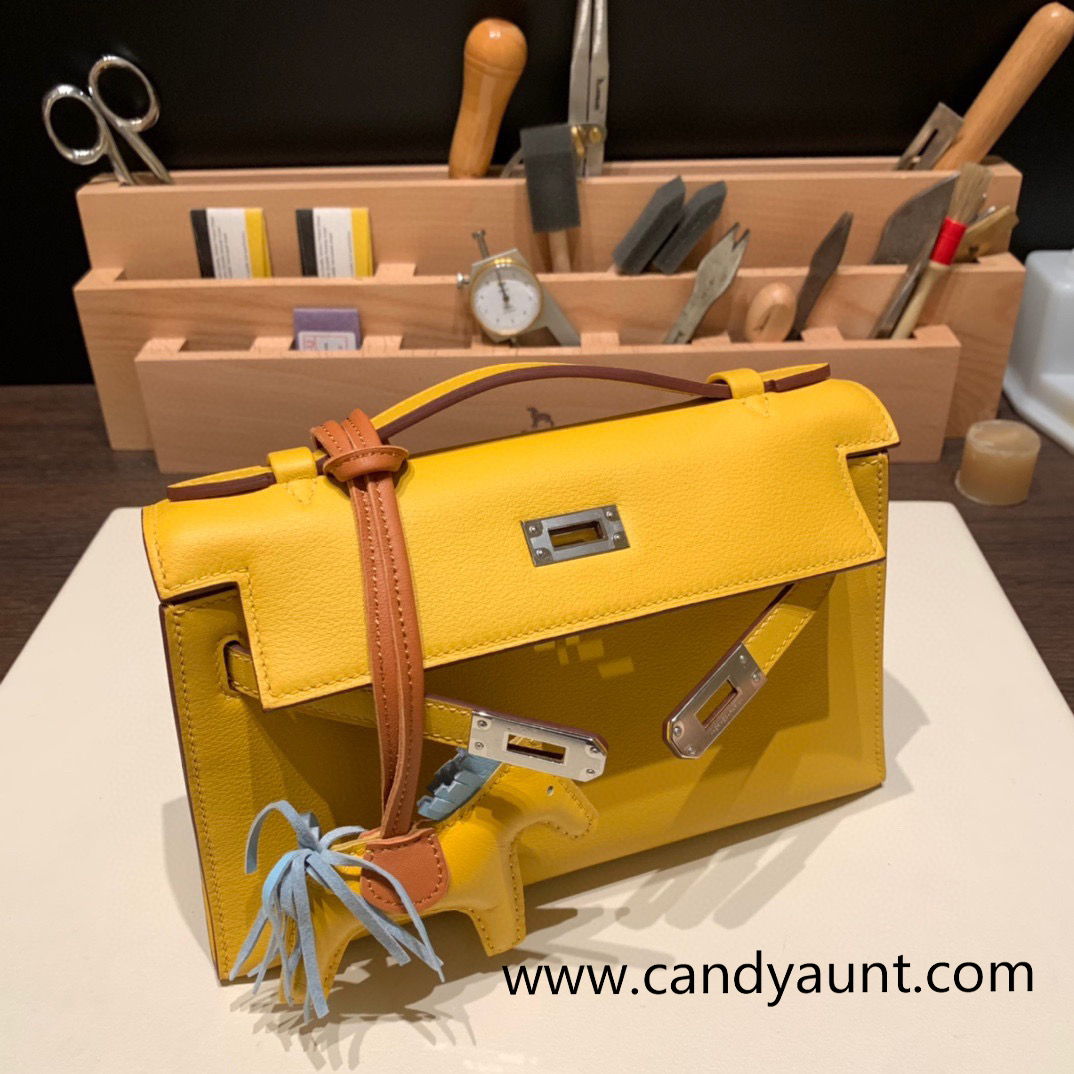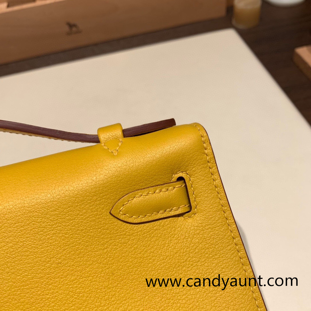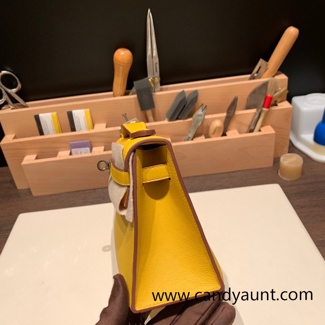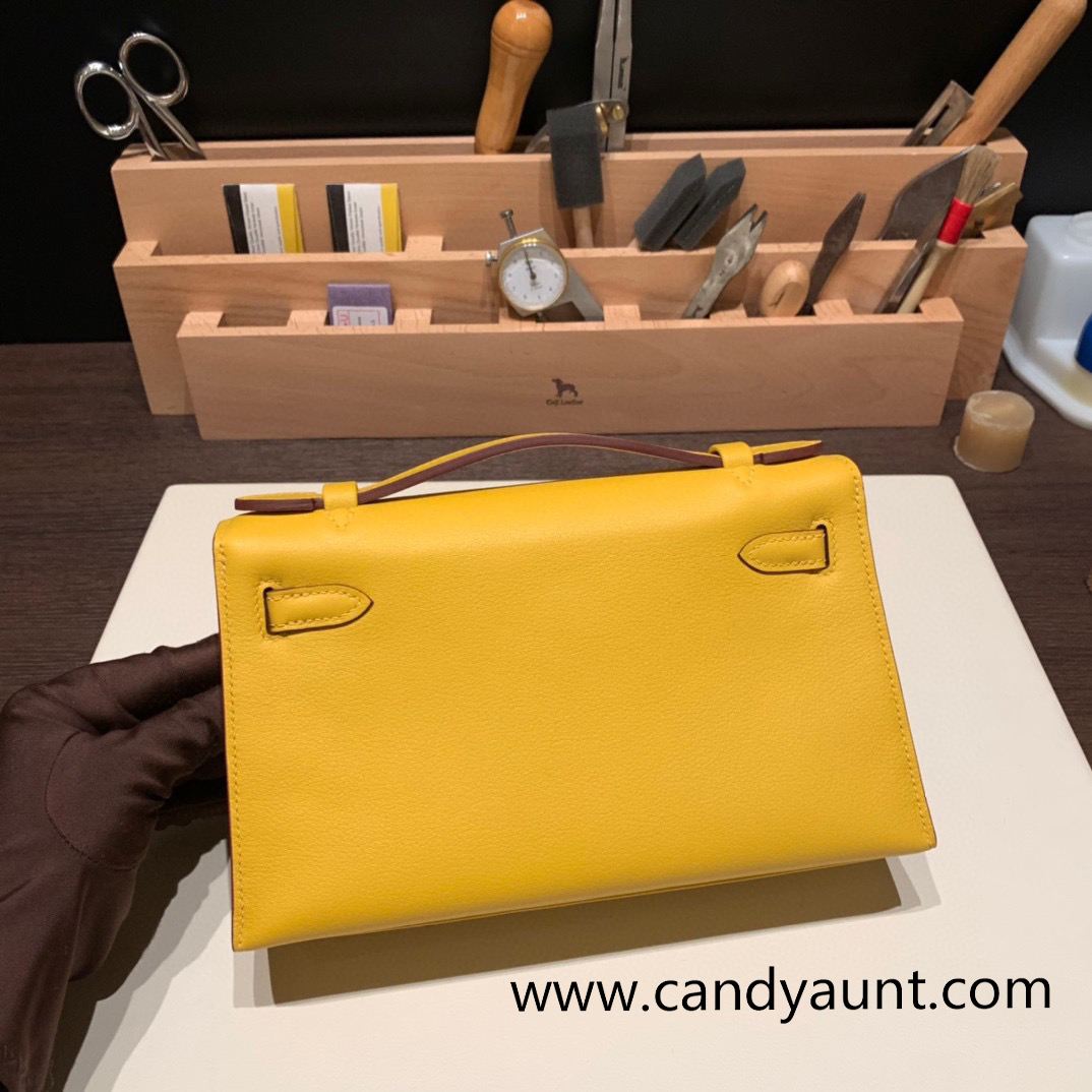 9D /Jaune Ambre Silver Hardware kelly pochette  swift