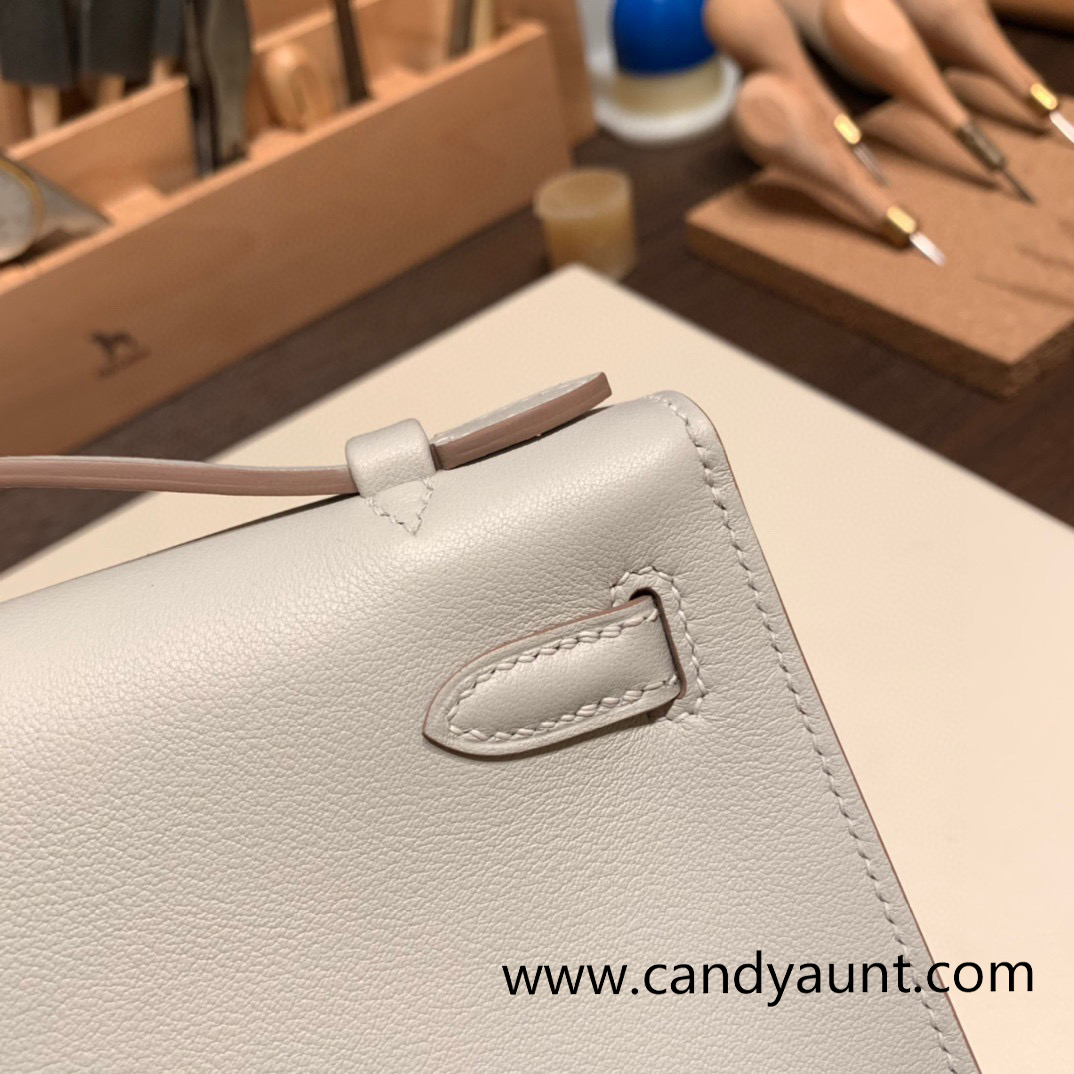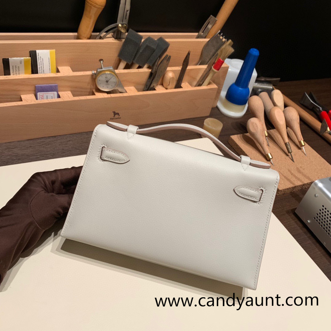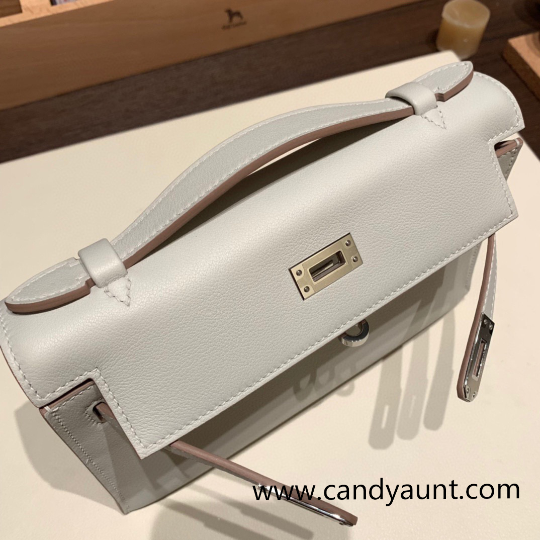 80 /Pearl Grey Silver Hardware kelly pochette swift