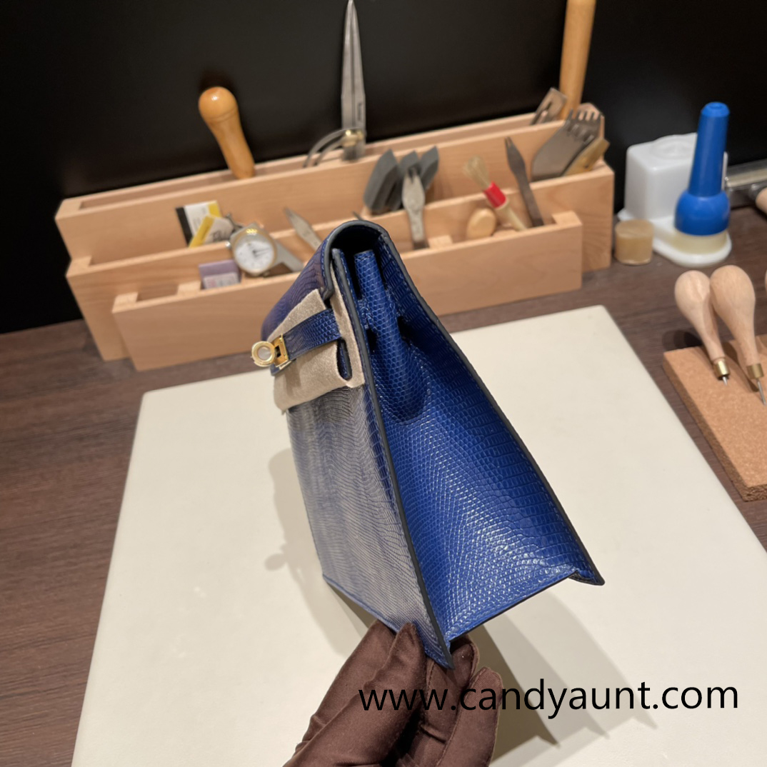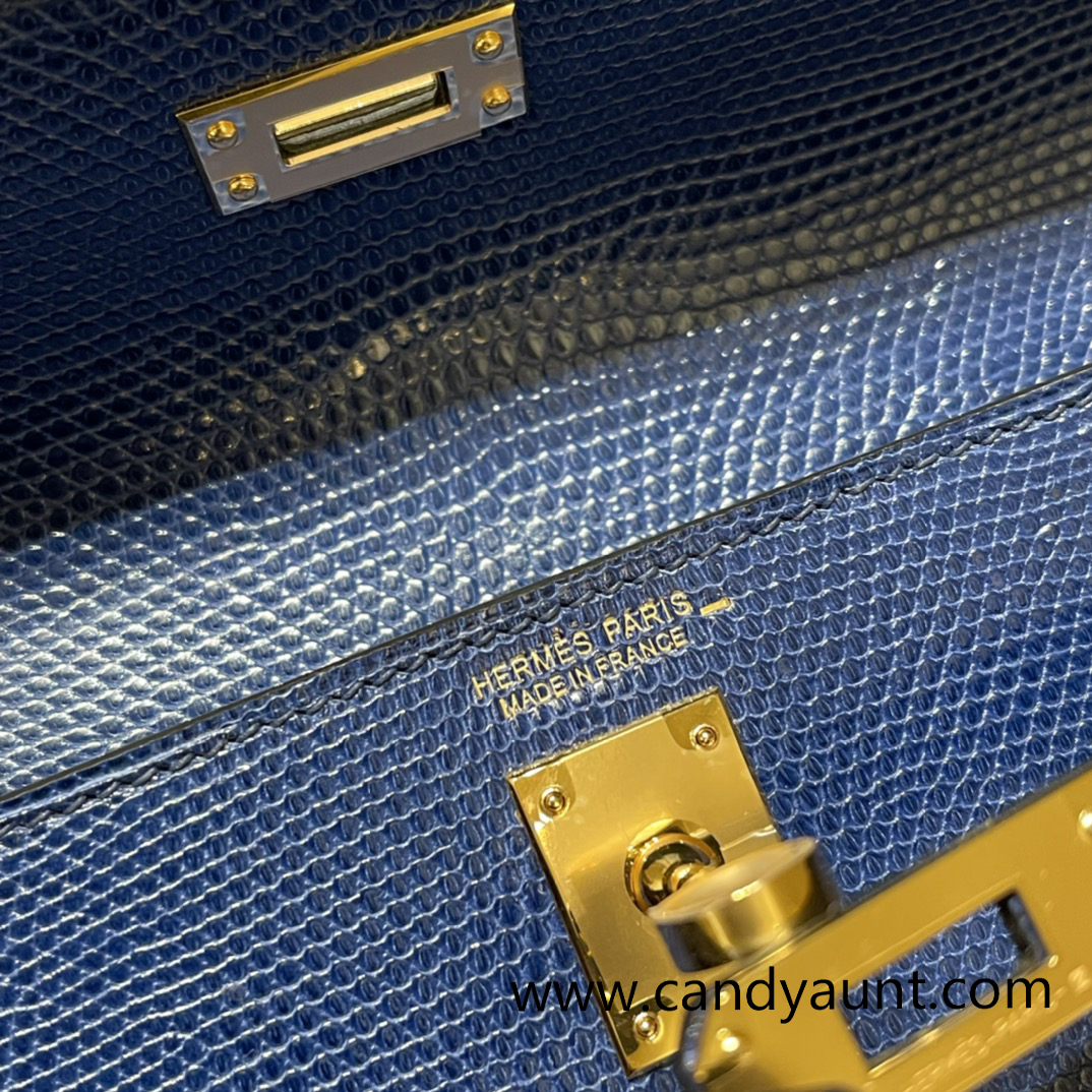 Hermes Kelly danse Lizard73 /Blue Saphir Gold Hardware
