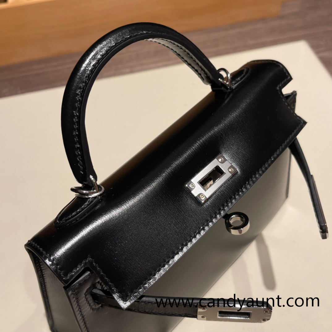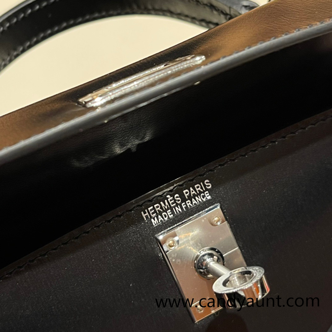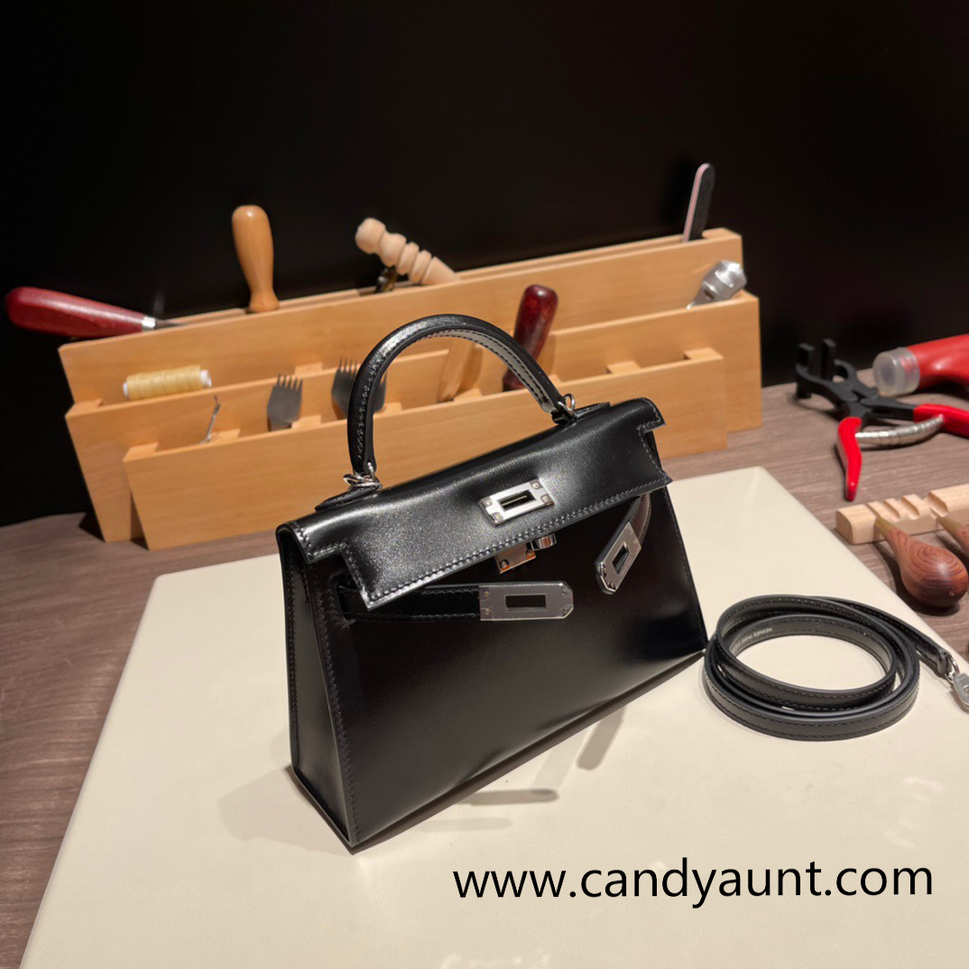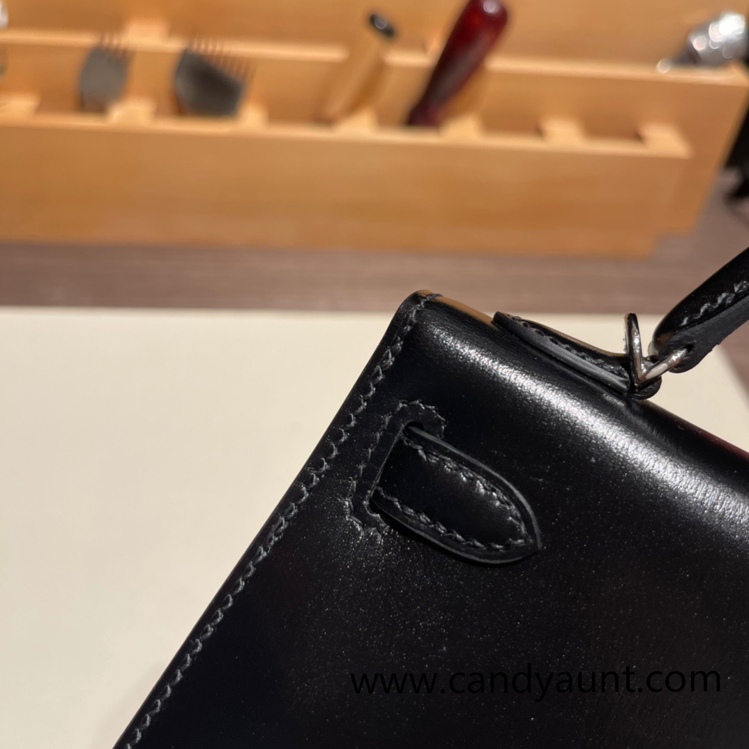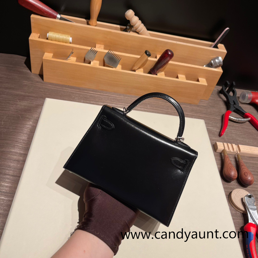 Hermes kelly20 New stock box 89/ Black (Noir) Silver Hardware Full Handmade kellymini-008