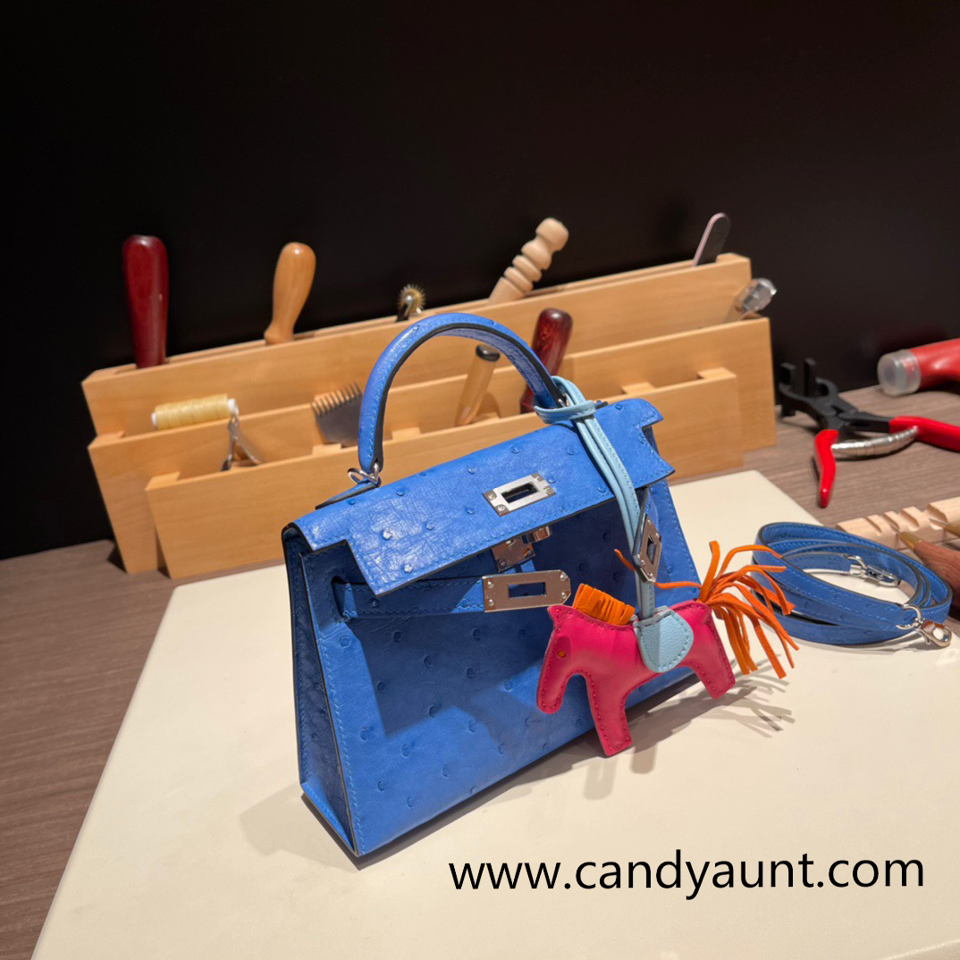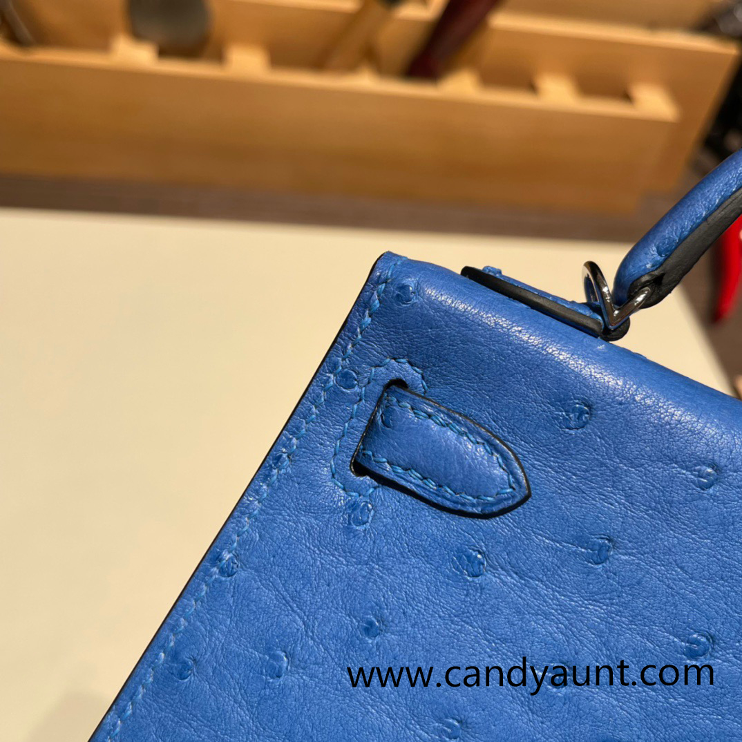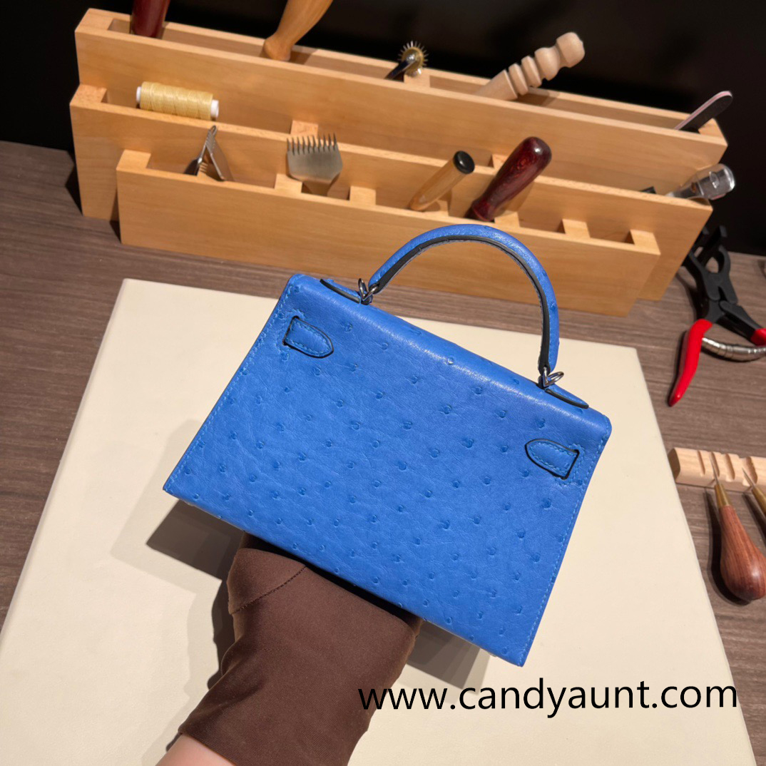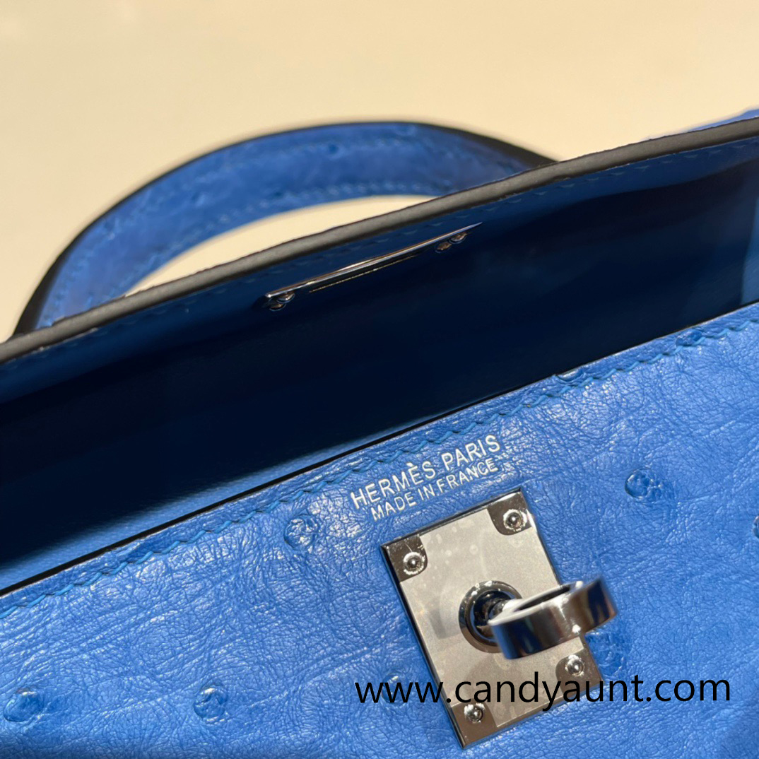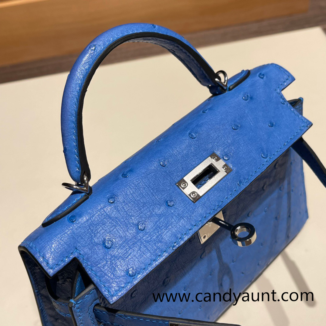 Hermes kelly20 ostrich 19cm 7Q/ Mykonos Silver Hardware Full Handmade kellymini-014