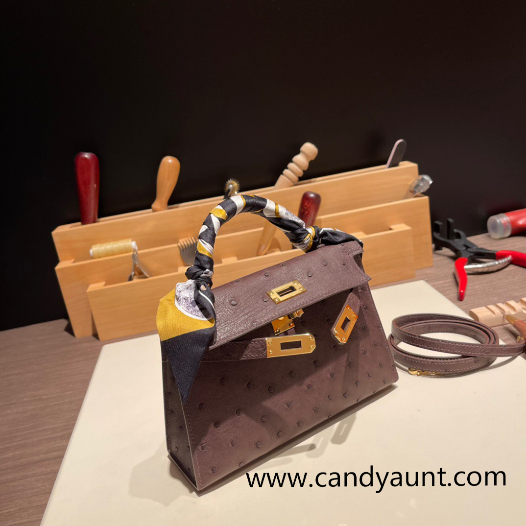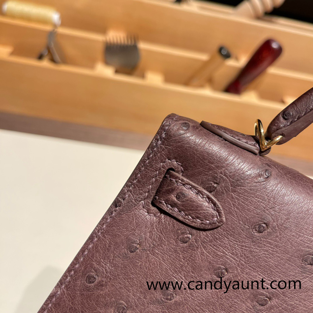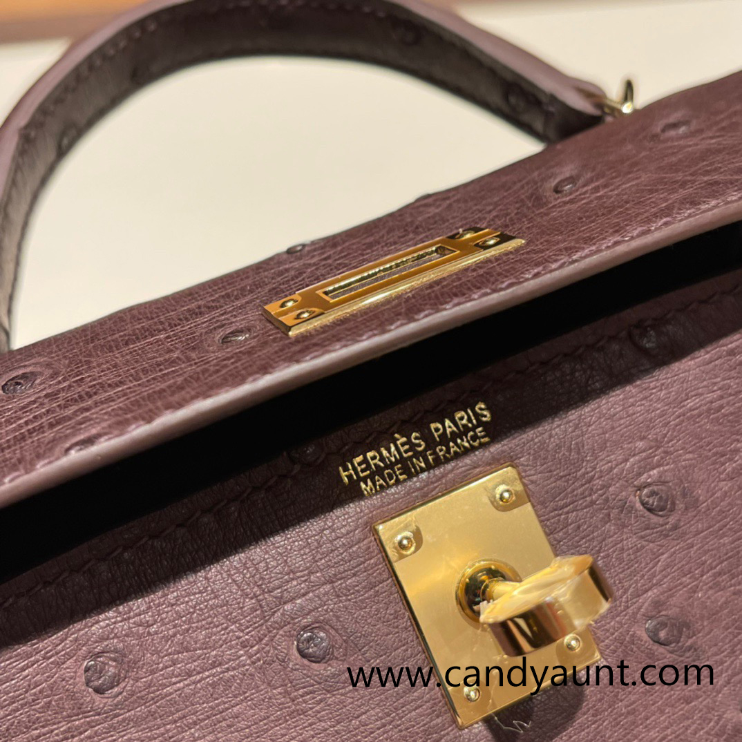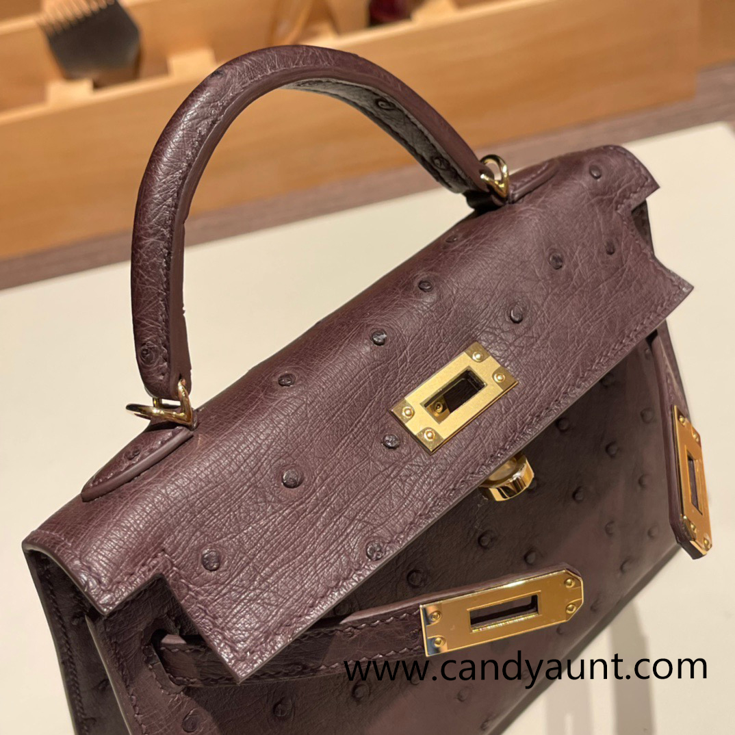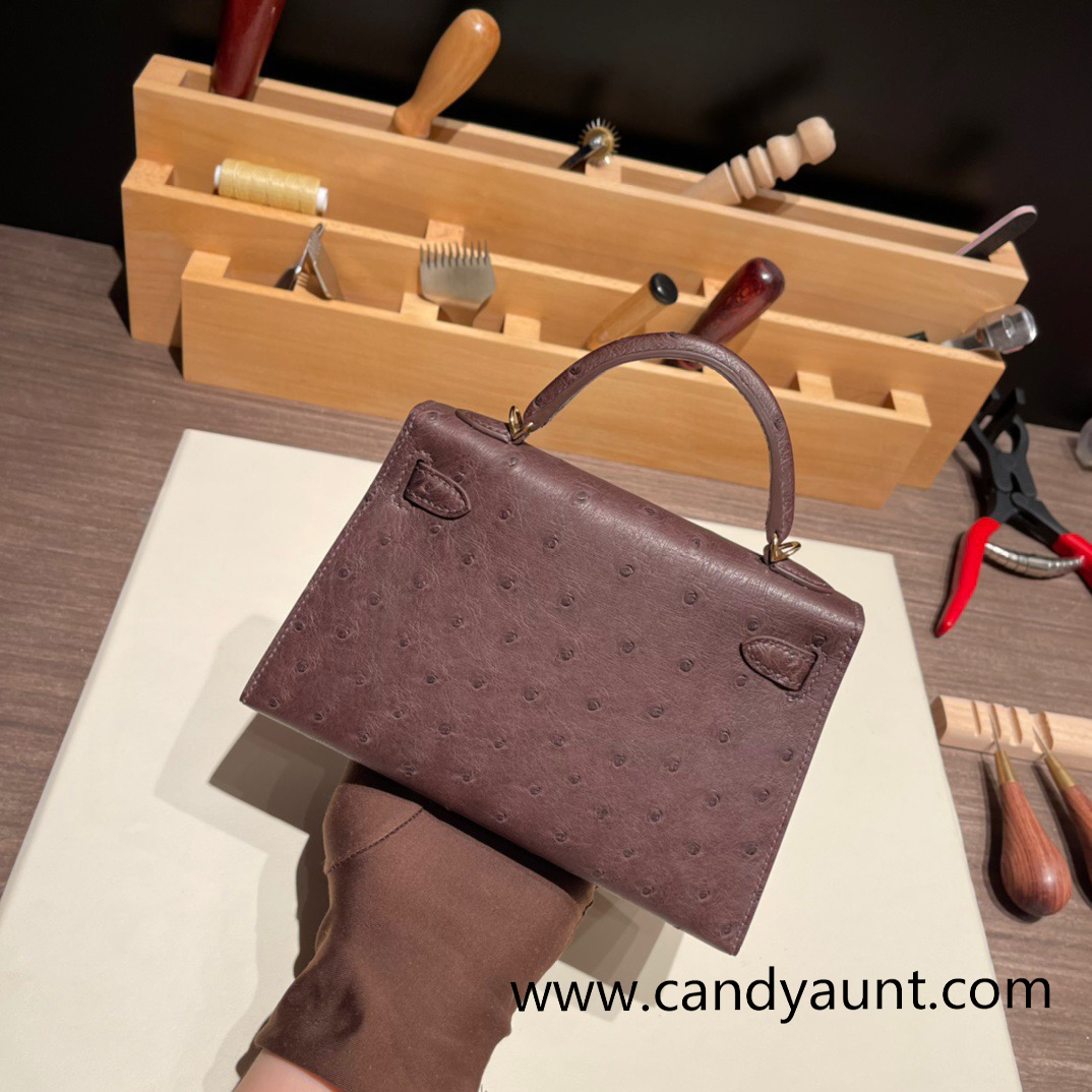 Hermes kelly20 ostrich 19cm 46 /Ebene Gold Hardware Full Handmade kellymini-015