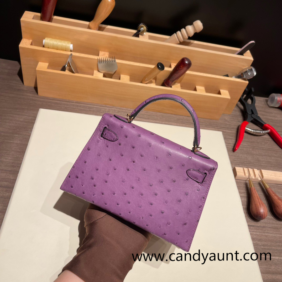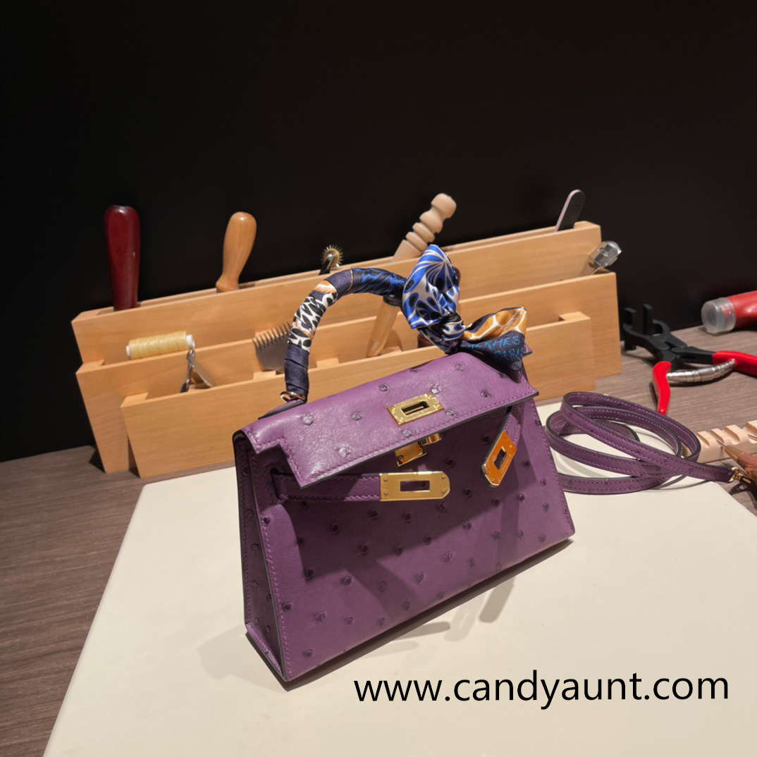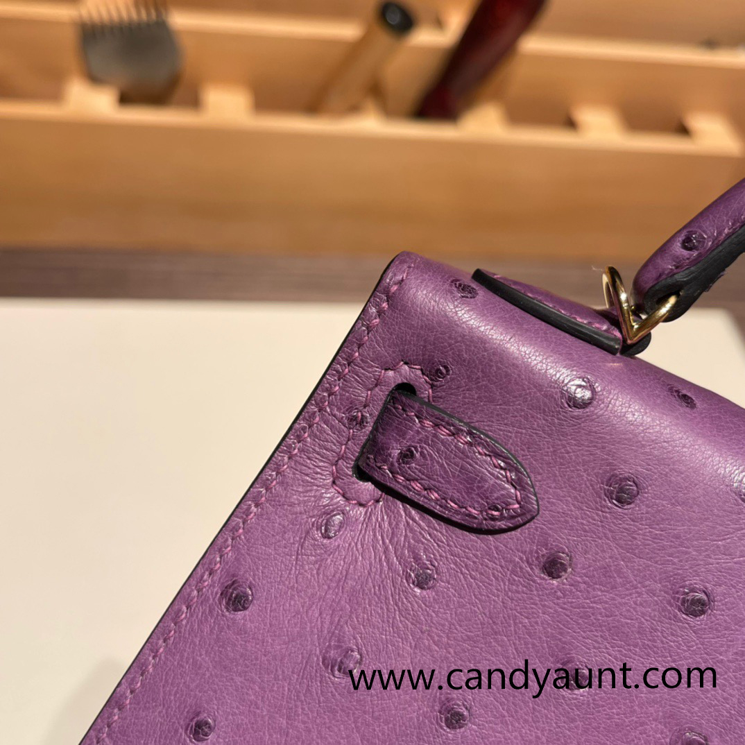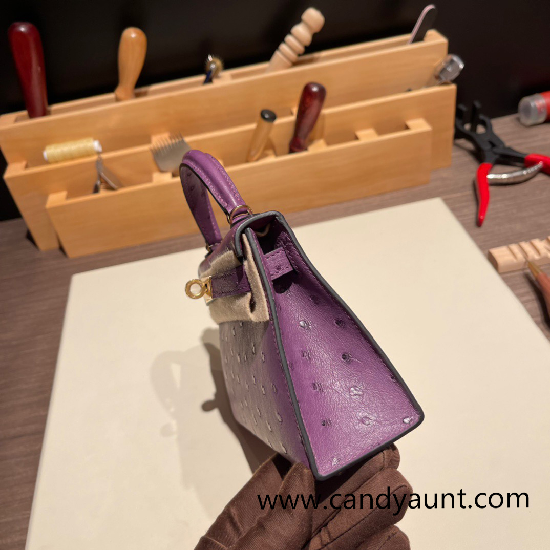 Hermes kelly20 ostrich 19cm 3C /Parchemin Full Handmade kellymini-017