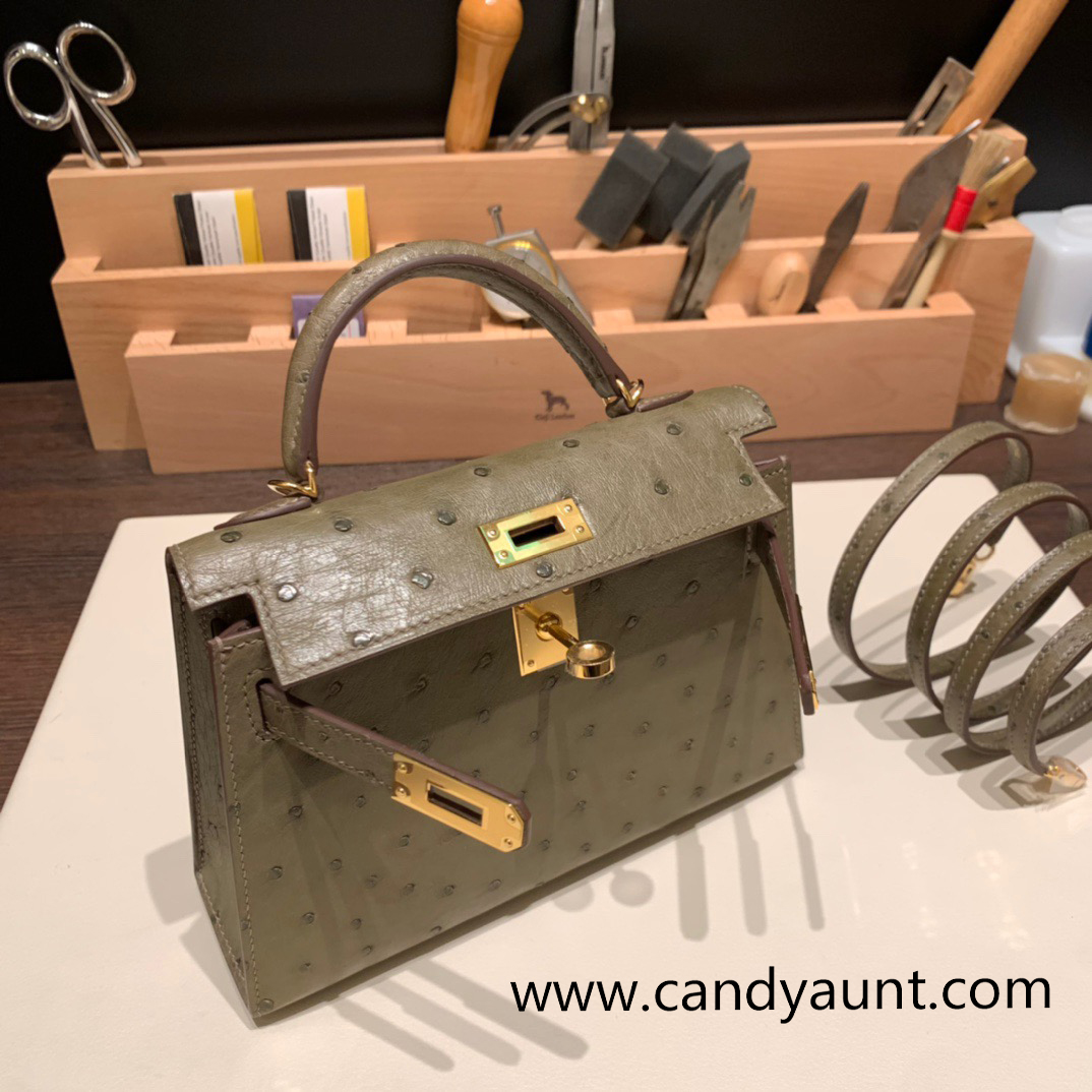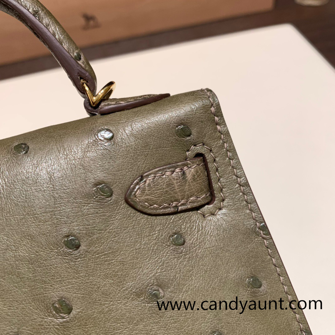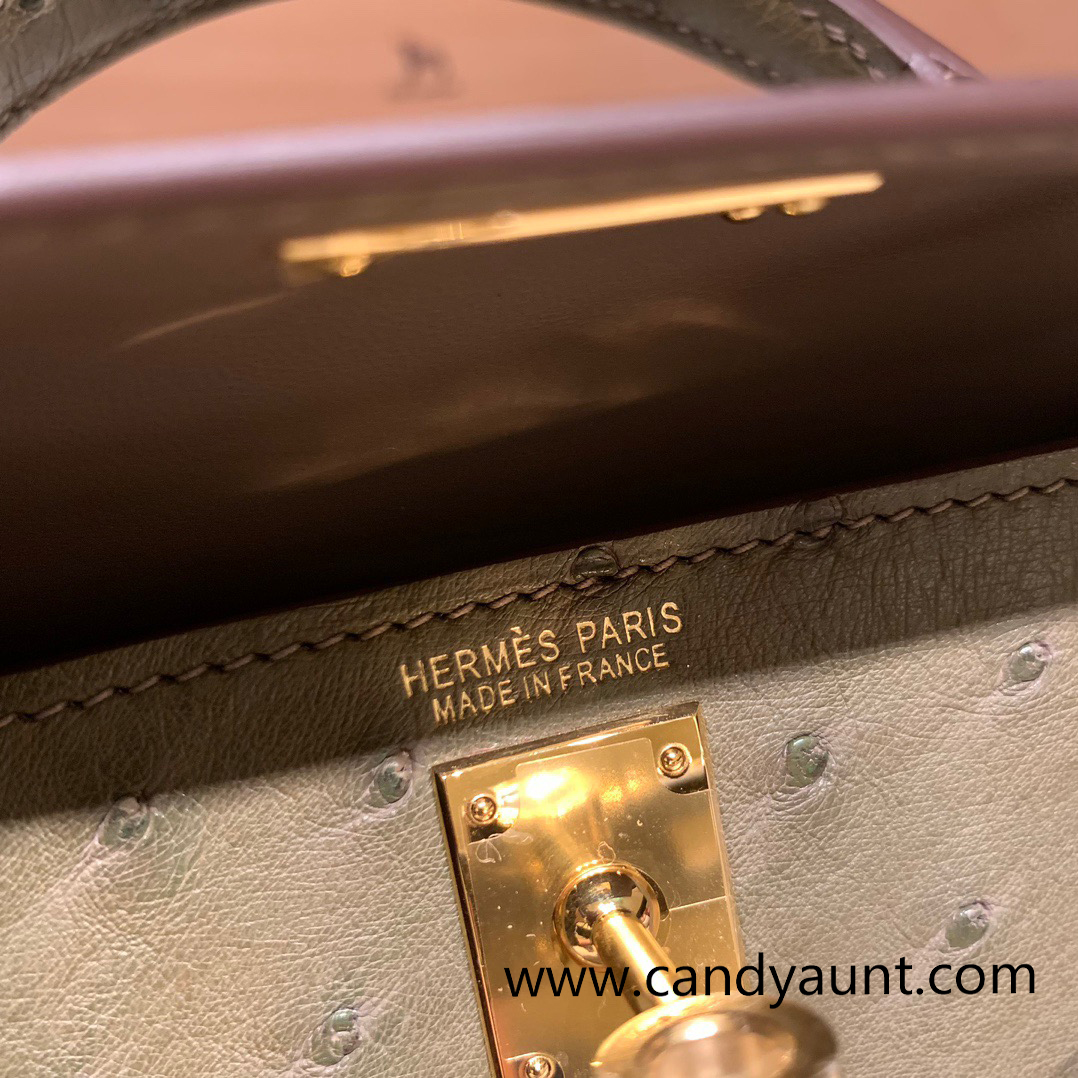 Hermes kelly20 ostrich 19cm P9 /Anemone Gold Hardware Full Handmade kellymini-018