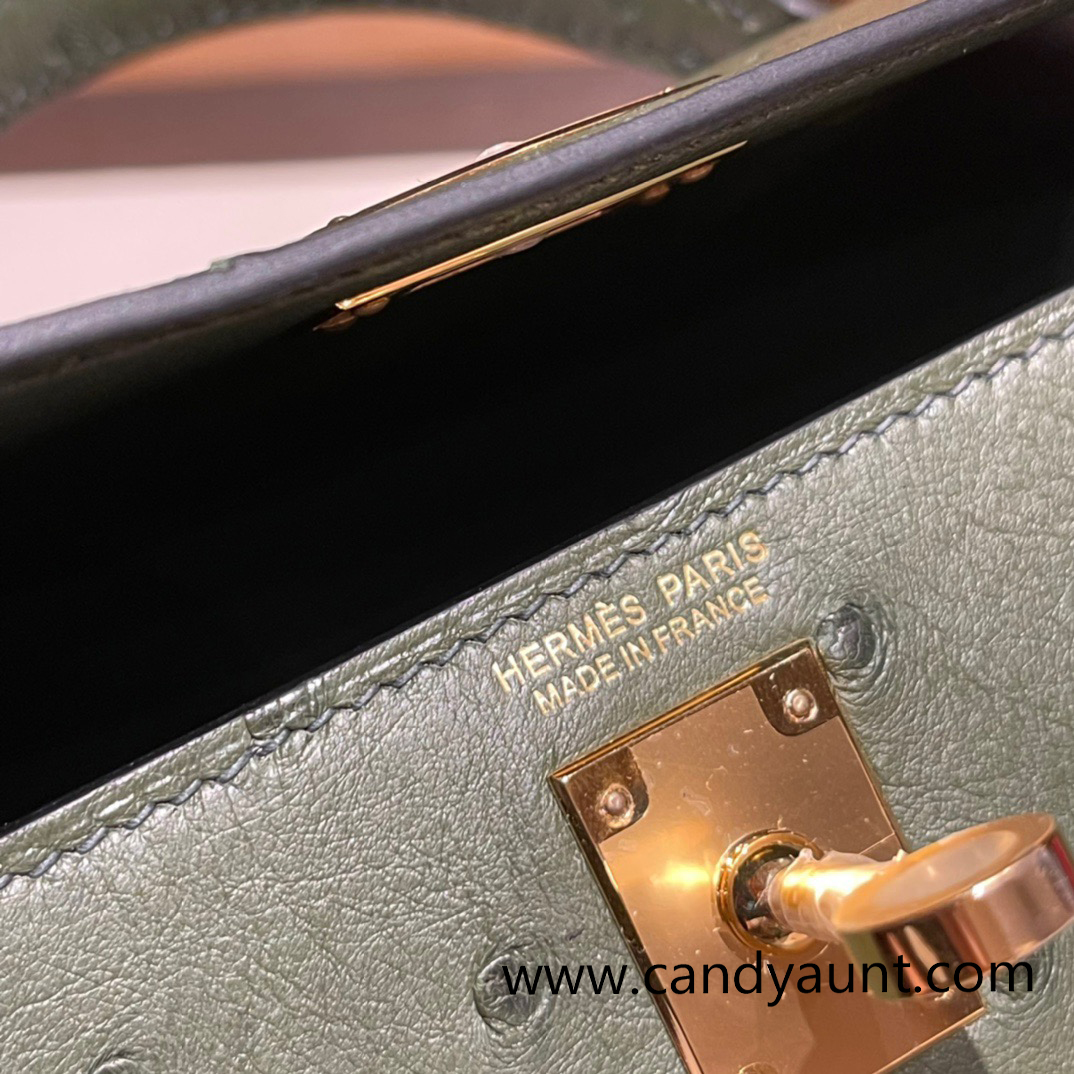 Hermes kelly20 ostrich 19cm 7Q/ Mykonos Gold Hardware Full Handmade kellymini-020