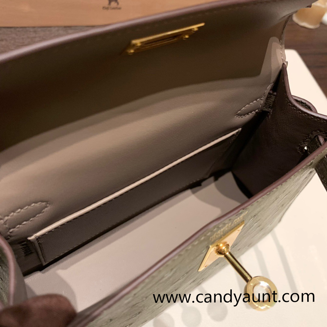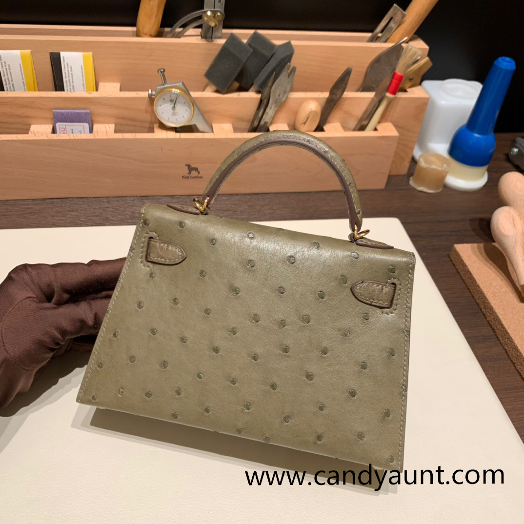 Hermes kelly20 ostrich 19cm V6/ /Canope & G8 /Vert Maquis Gold Hardware Full Handmade kellymini-024