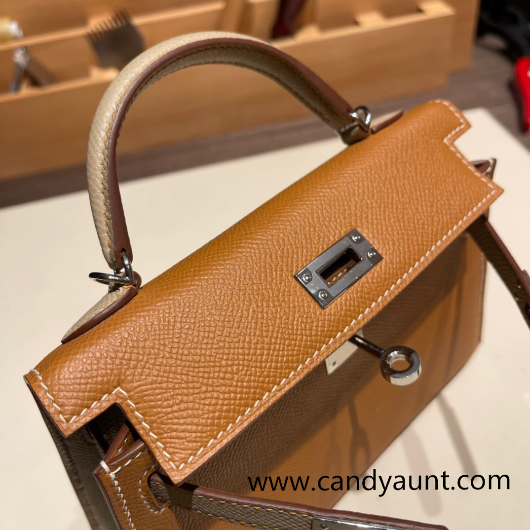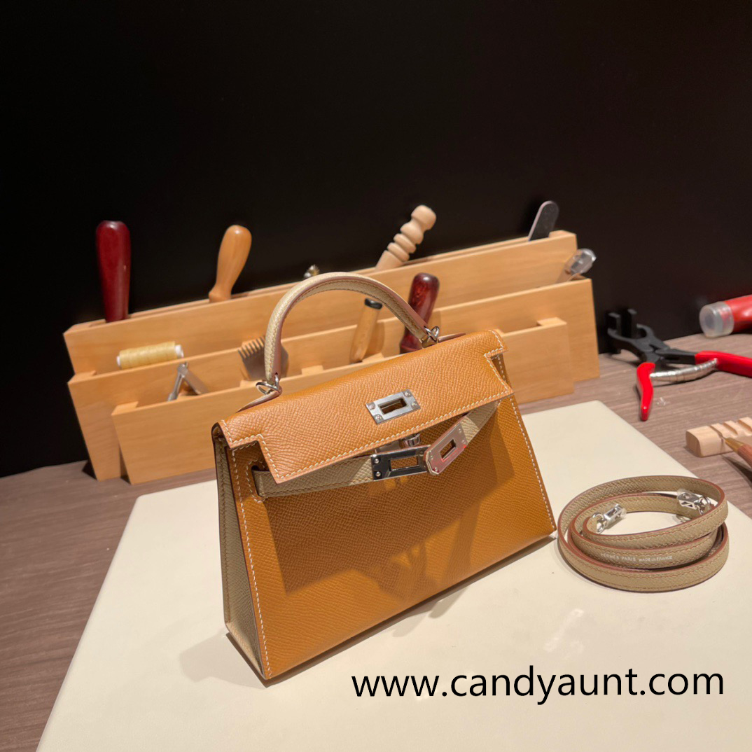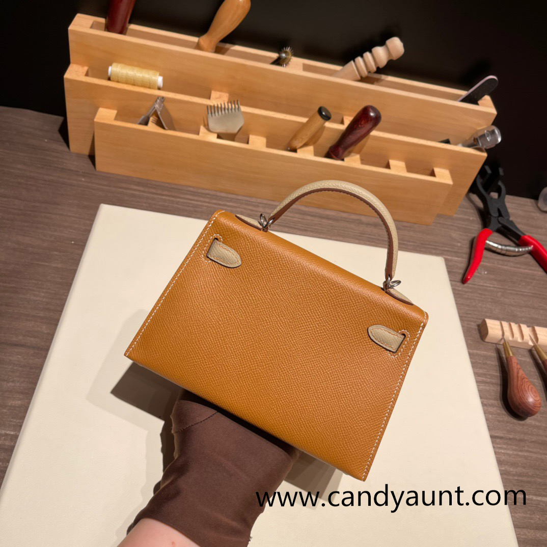 Hermes kelly20 epsom19cm 37 /Gold& S2/ Trench Silver Hardware Full Handmade kellymini-069