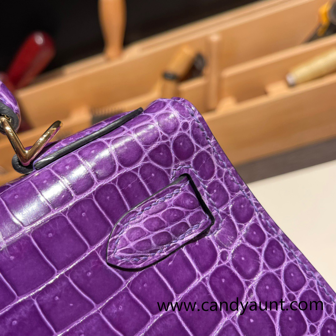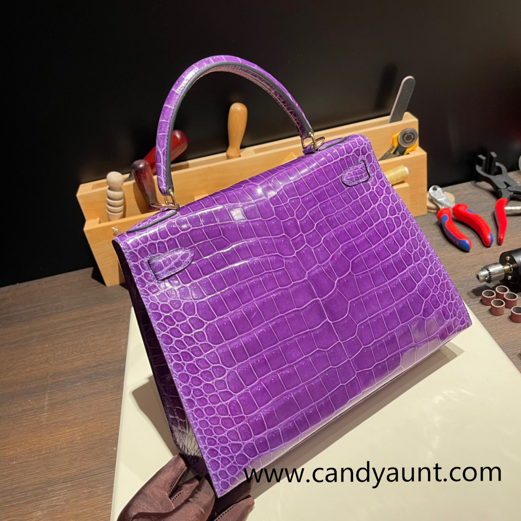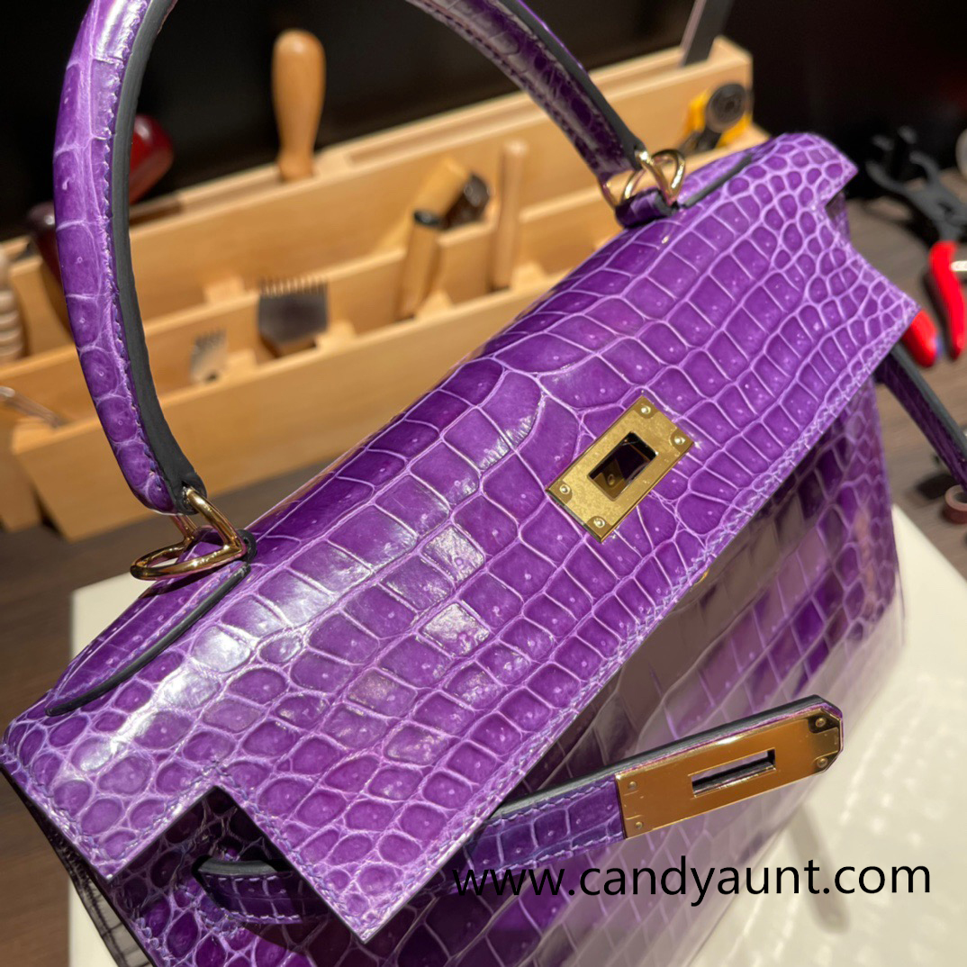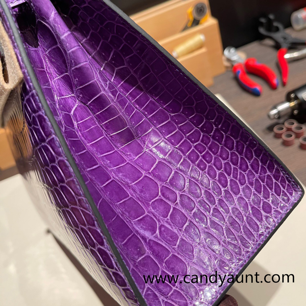 Hermes Kelly 28CM Porosus Crocodile 96 / Violet GoldHardware 033