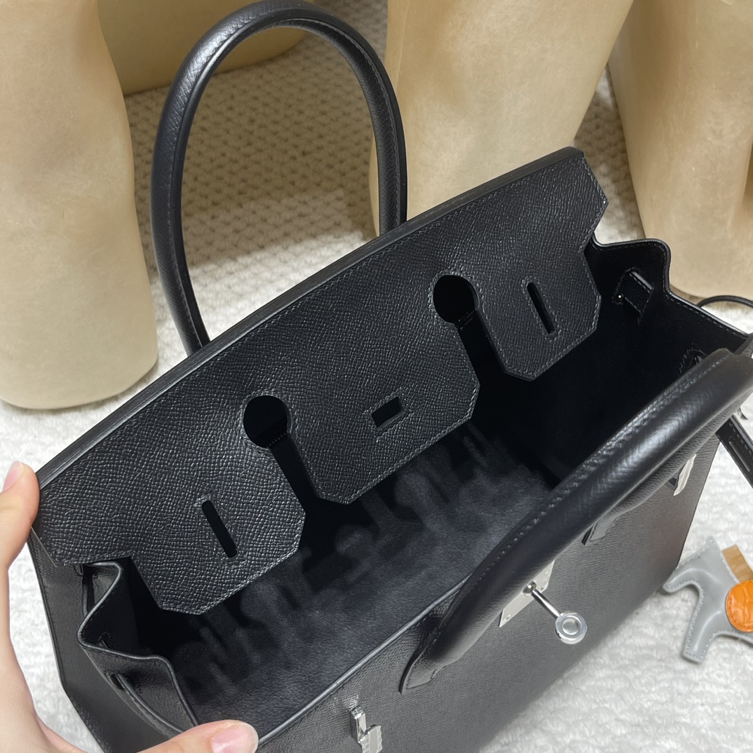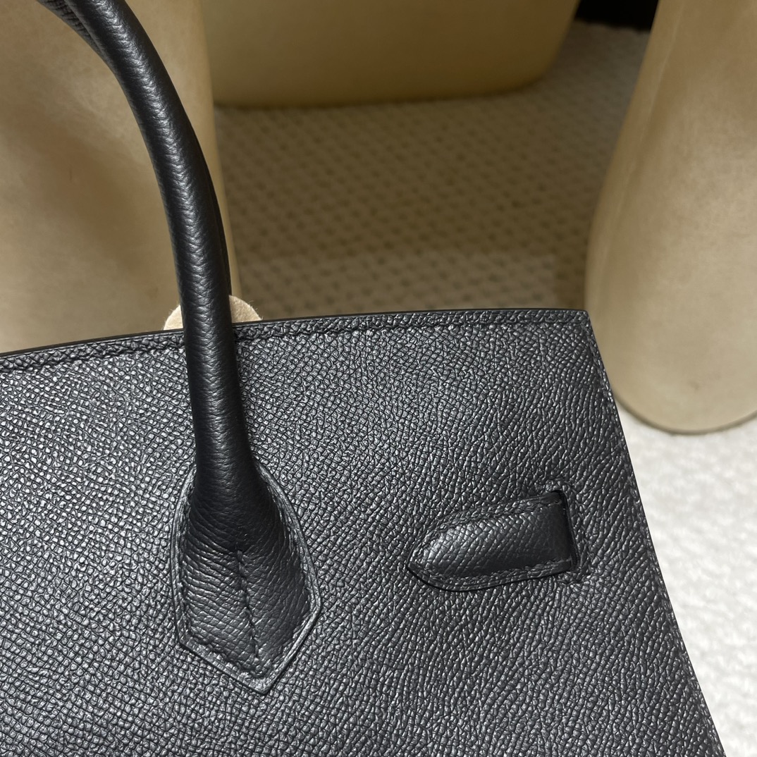 Hermès 30 Birkin Sellier Saddle Stitch Epsom 89 / Black Silver Hardware Full Hand-Stitching Epsom