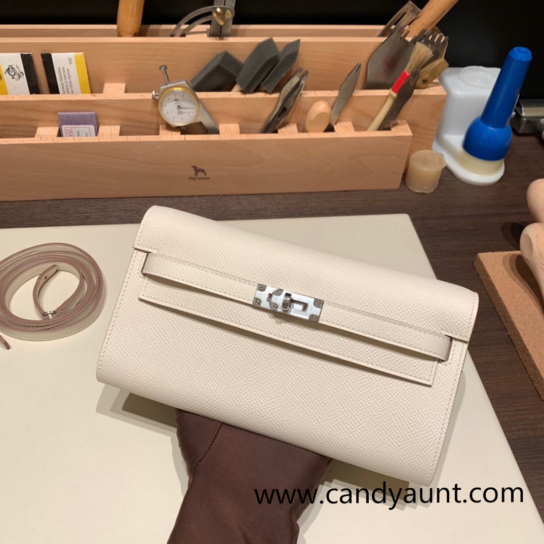 10/Craie クレ Silver Hardware Full Handmade Kelly Wallet Long To Go epsom