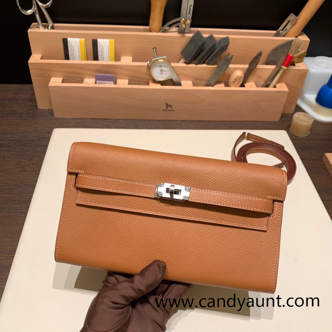 37 /Gold Silver Hardware Full Handmade Kelly Wallet Long To Go epsom