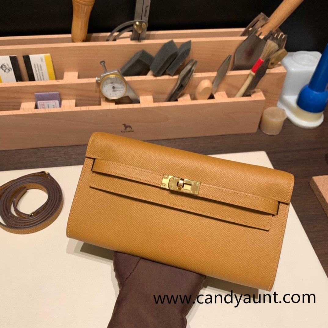 2S/Sesame Gold Hardware Full Handmade Kelly Wallet Long To Go epsom