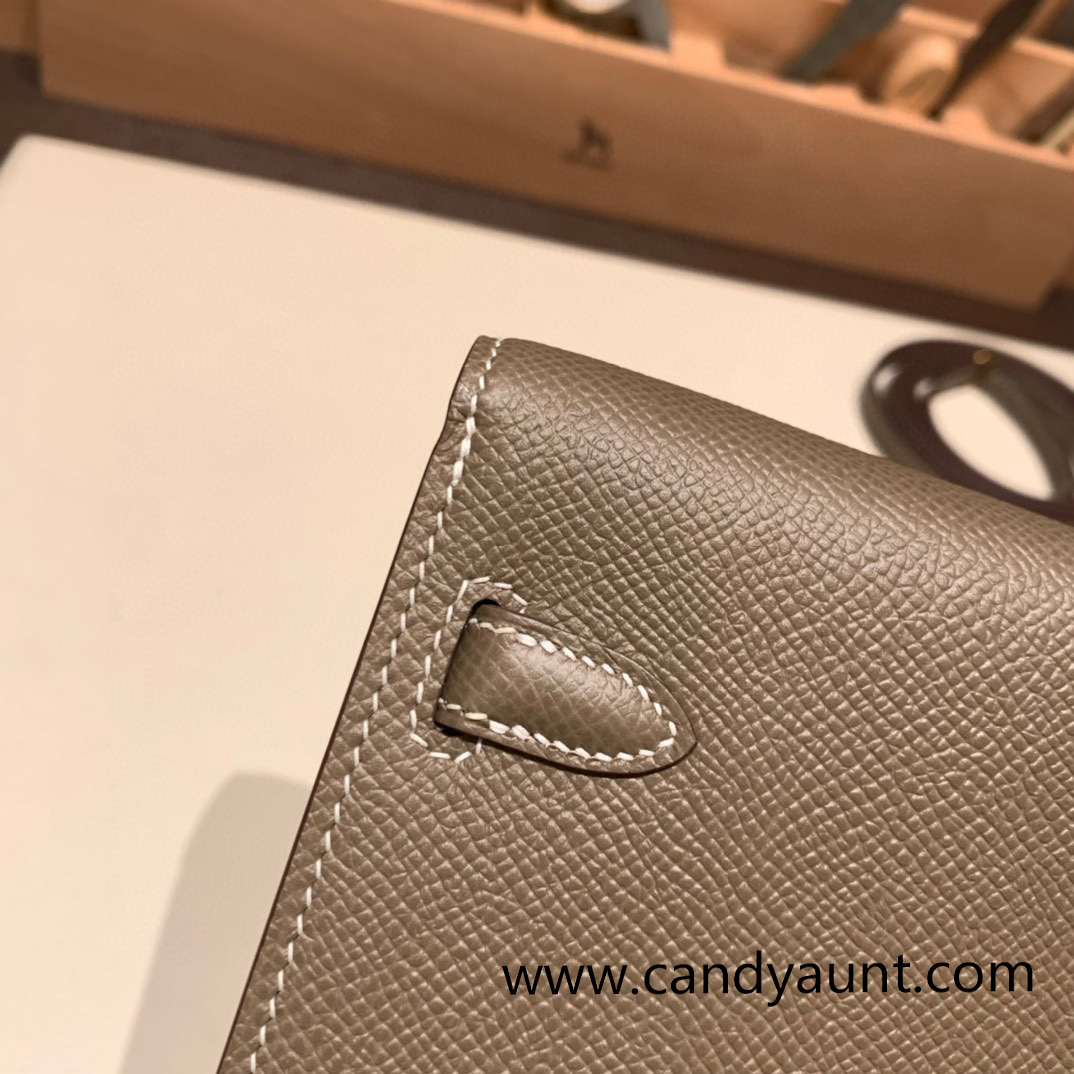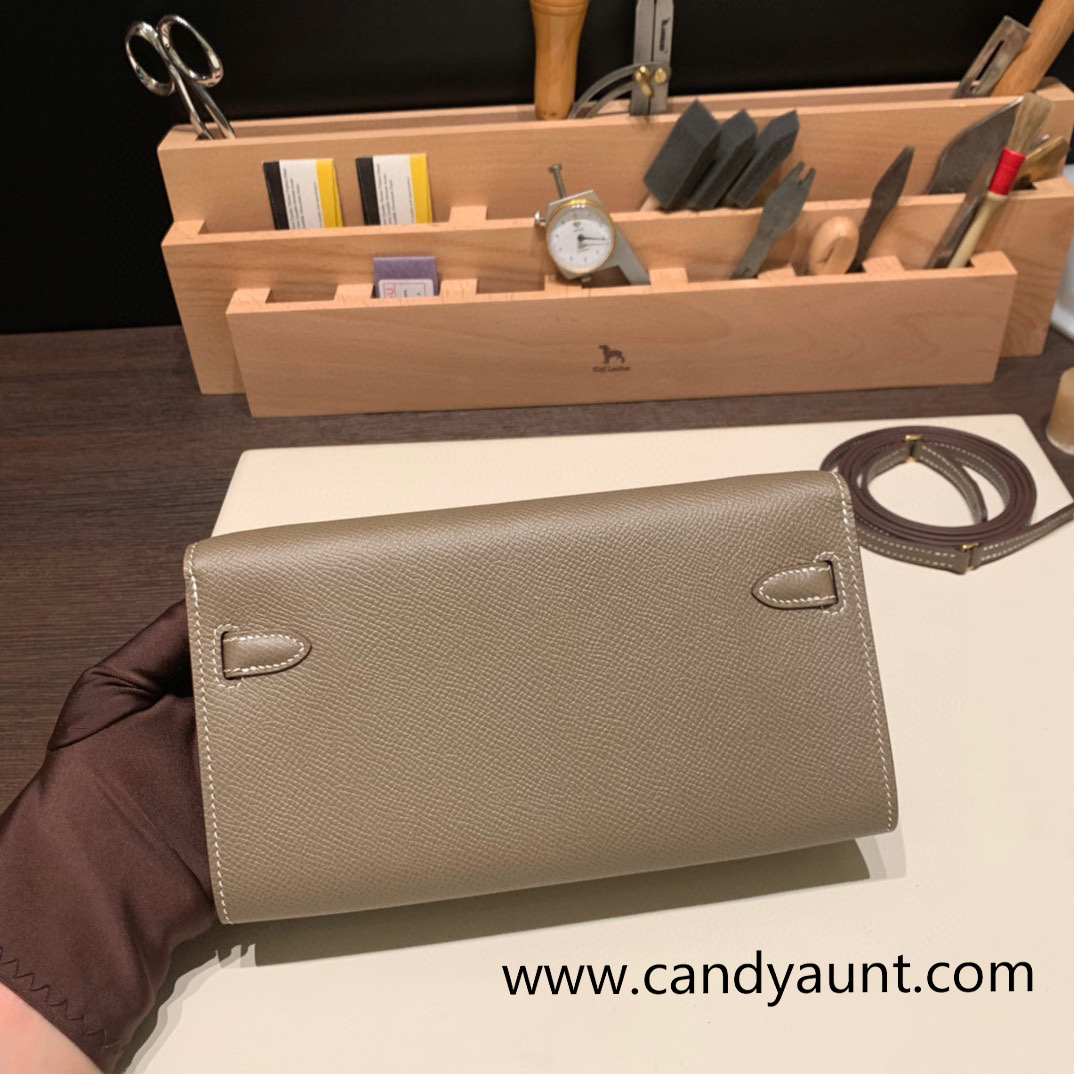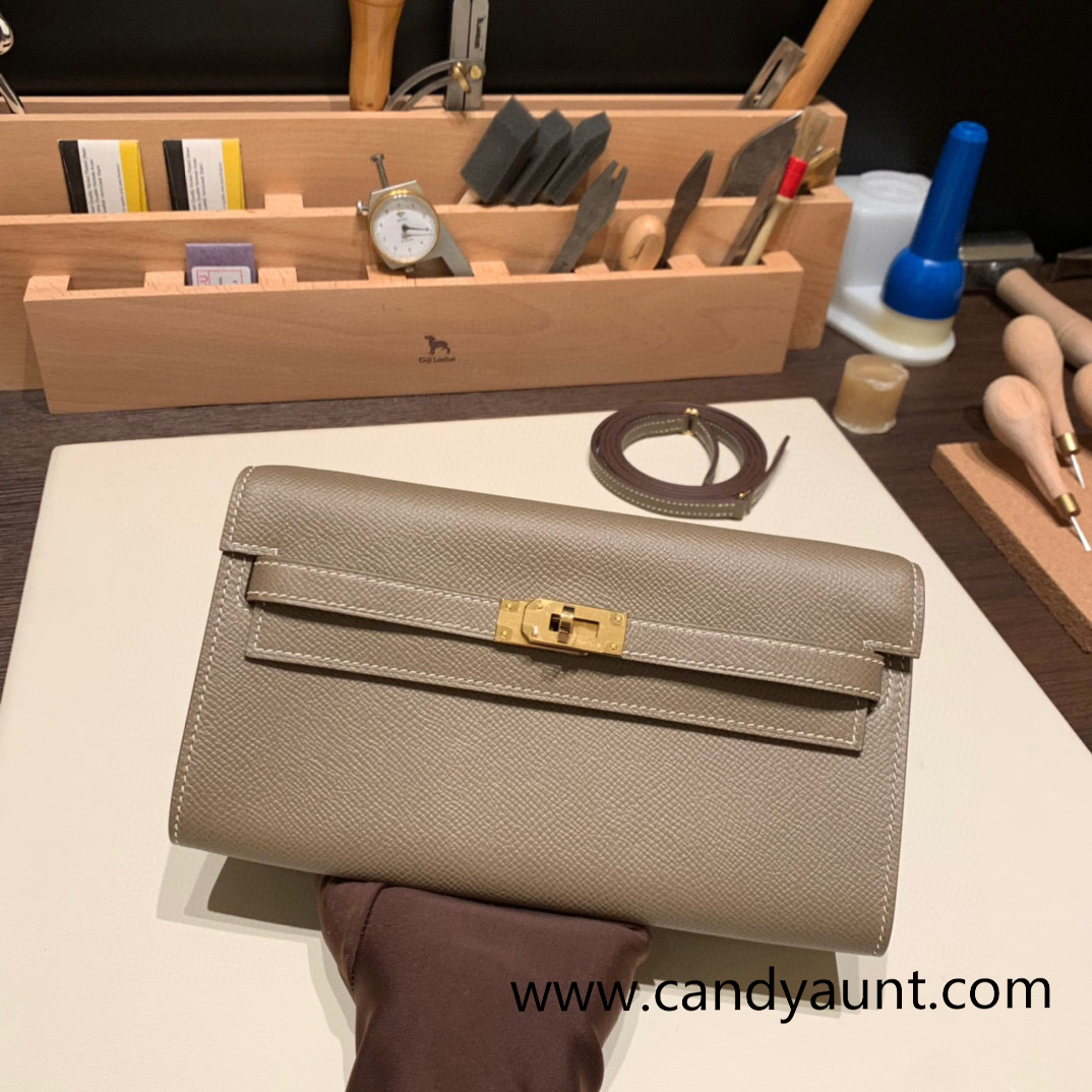 18/Étoupe Grey Gold Hardware Full Handmade Kelly Wallet Long To Go epsom