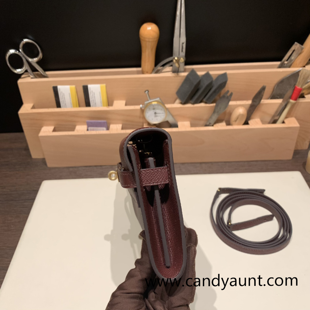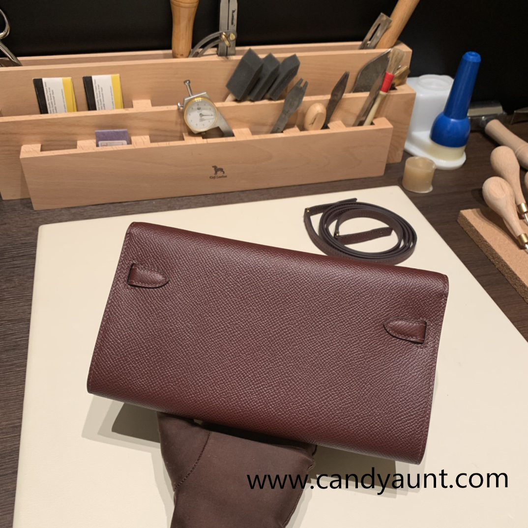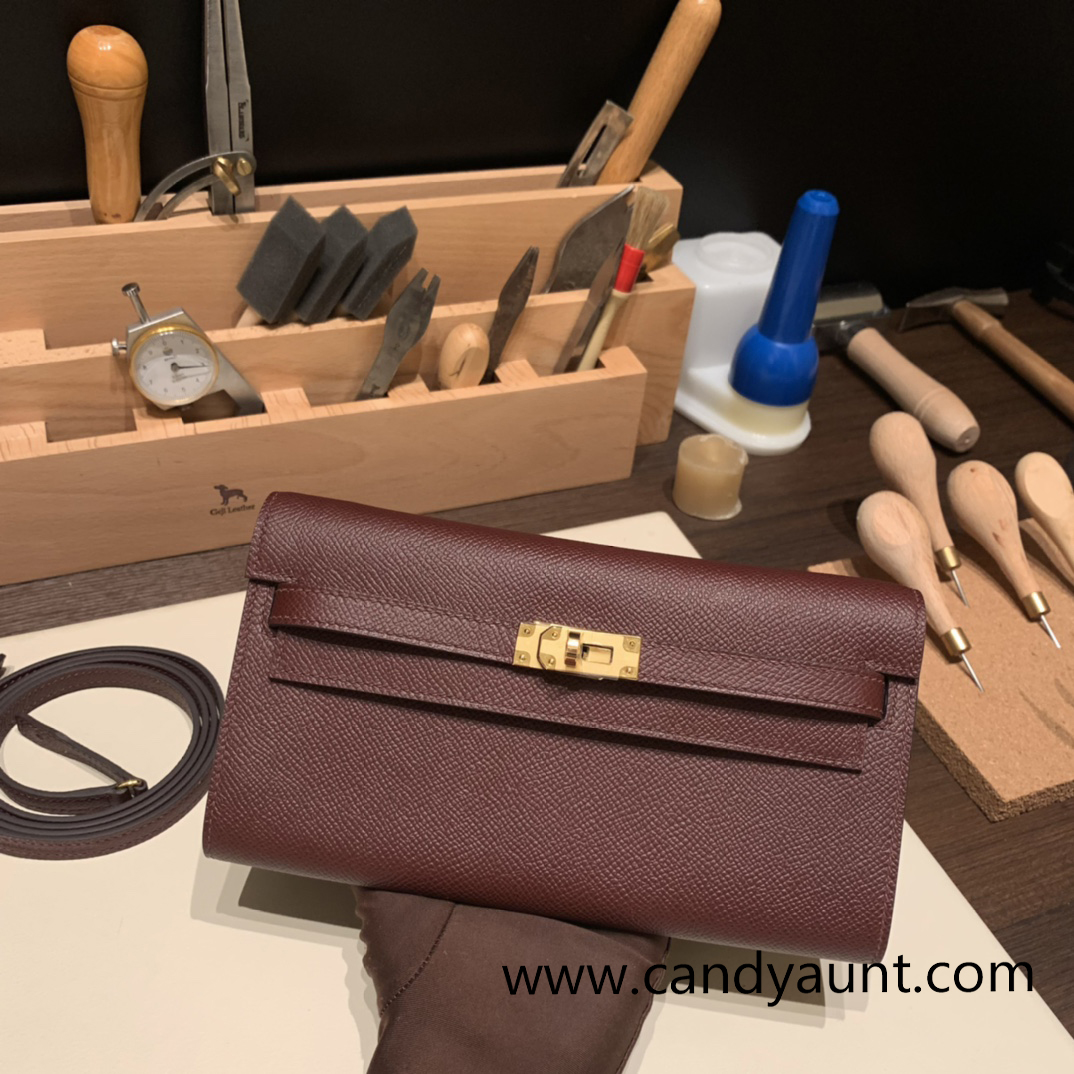 57/Bordeaux Gold Hardware Full Handmade Kelly Wallet Long To Go epsom
