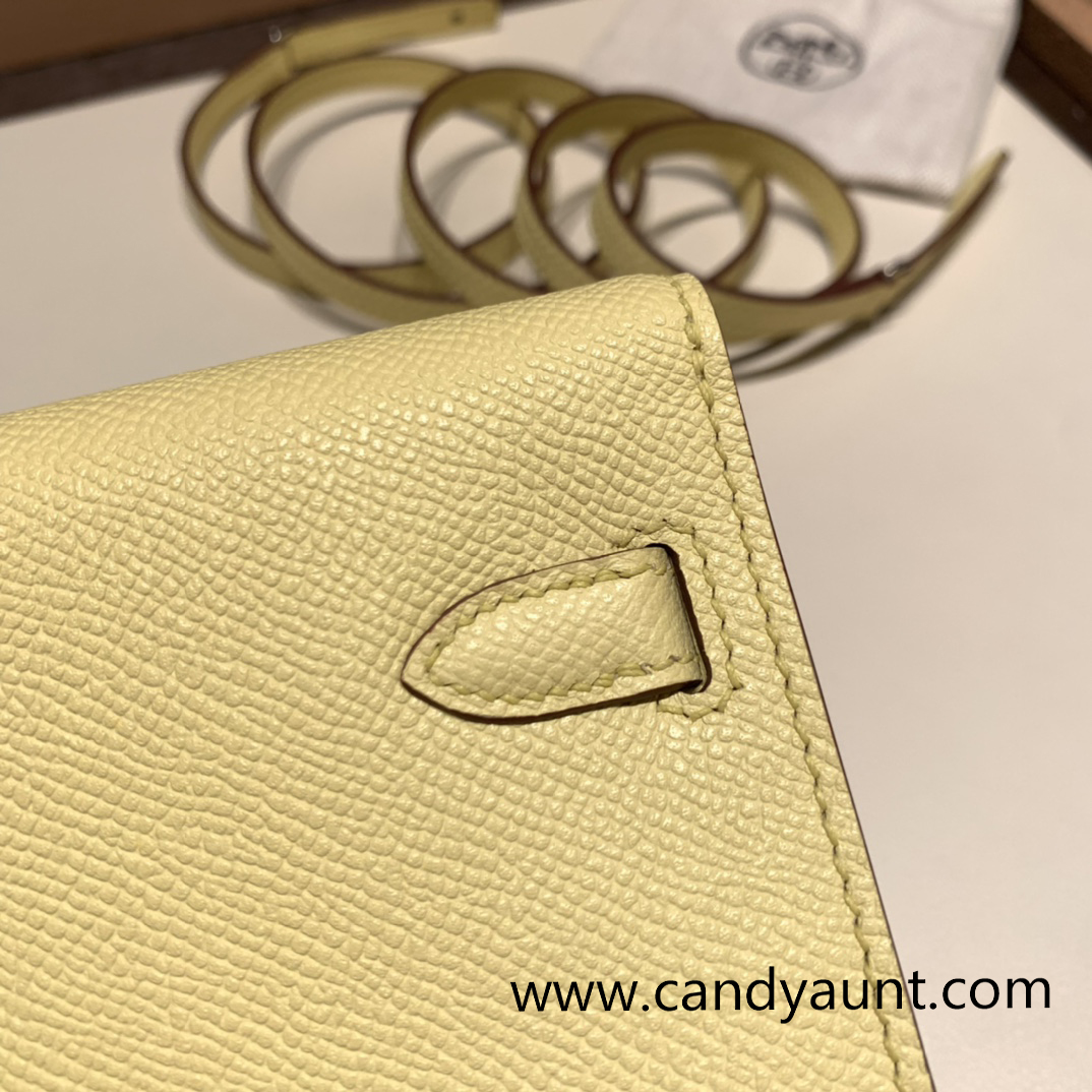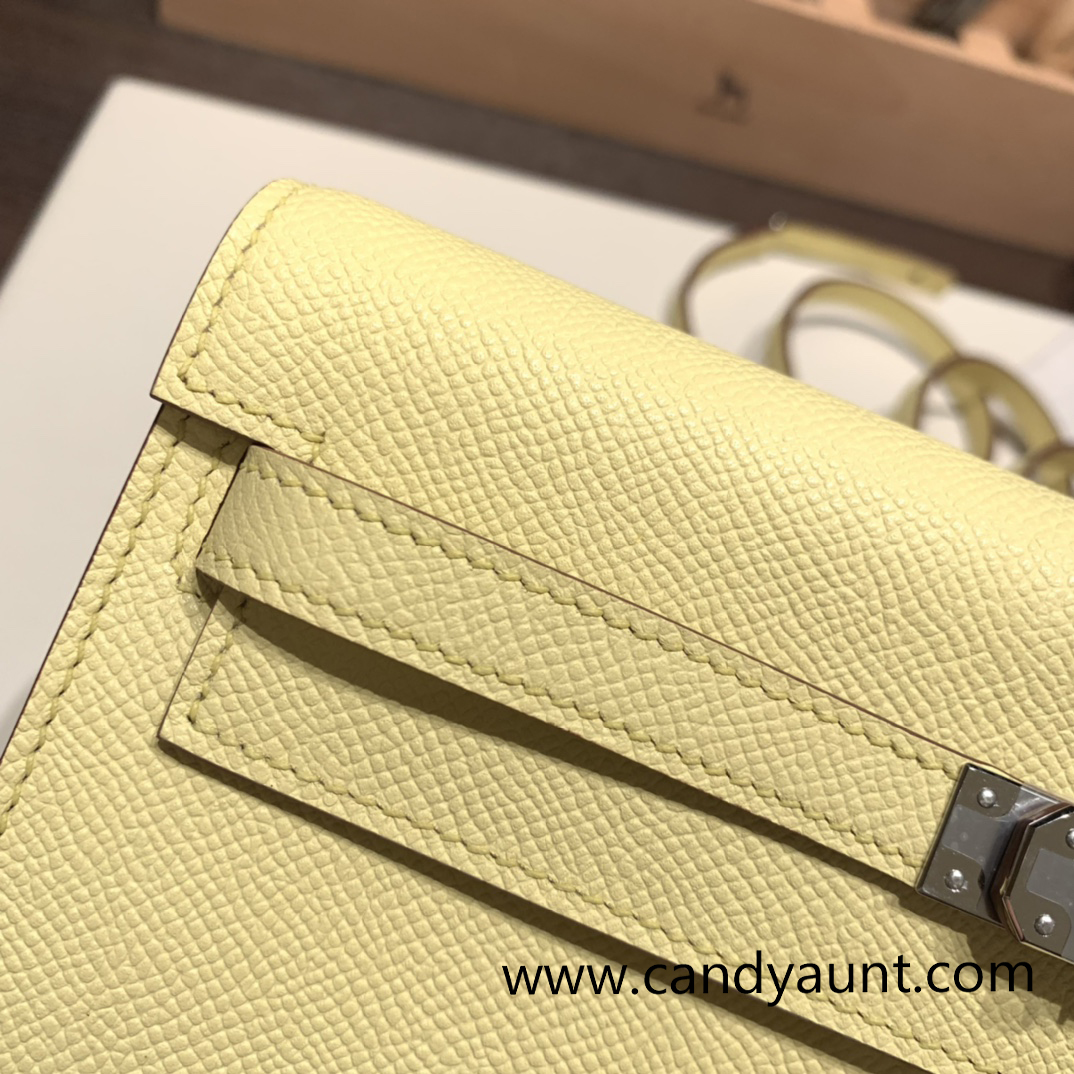 1Z/Jaune Poussin Silver Hardware Full Handmade Kelly Wallet Long To Go epsom