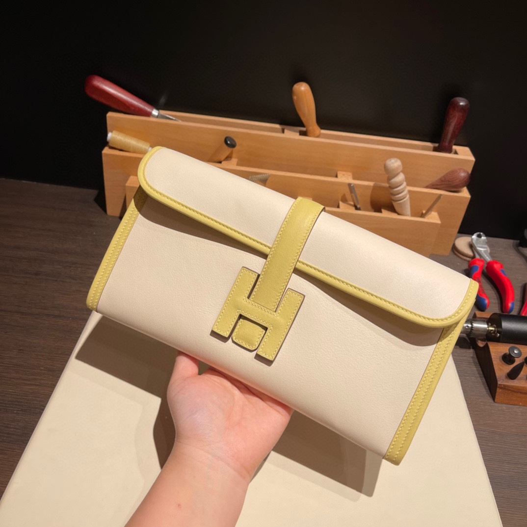 Hermès Jige Elan 29 Clutch Swift I2/Nata & 1Z/Jaune Poussin JigeElan-078 Fully Hand-Stitched