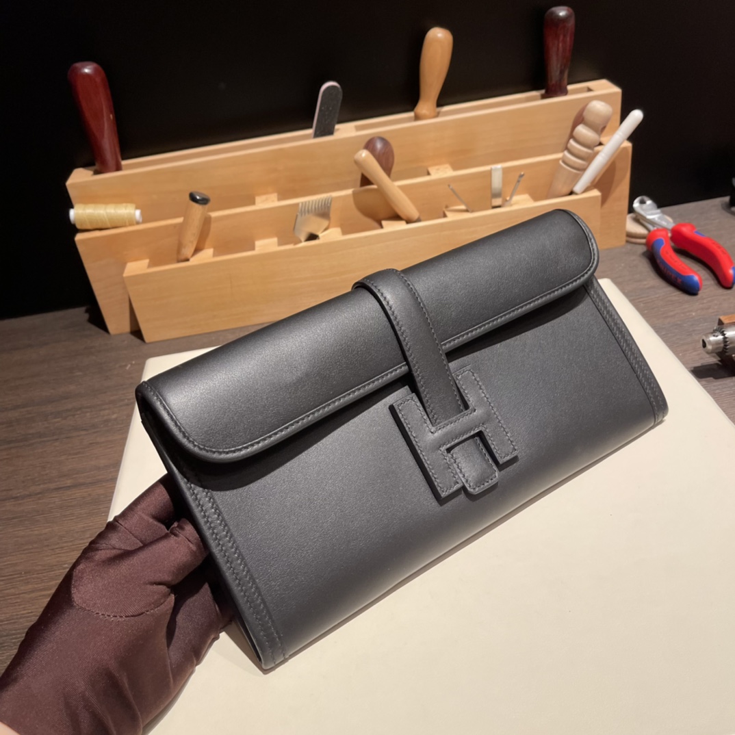 Hermès Jige Elan 29 Clutch Swift 89/Black (Noir) JigeElan-083 Fully Hand-Stitched