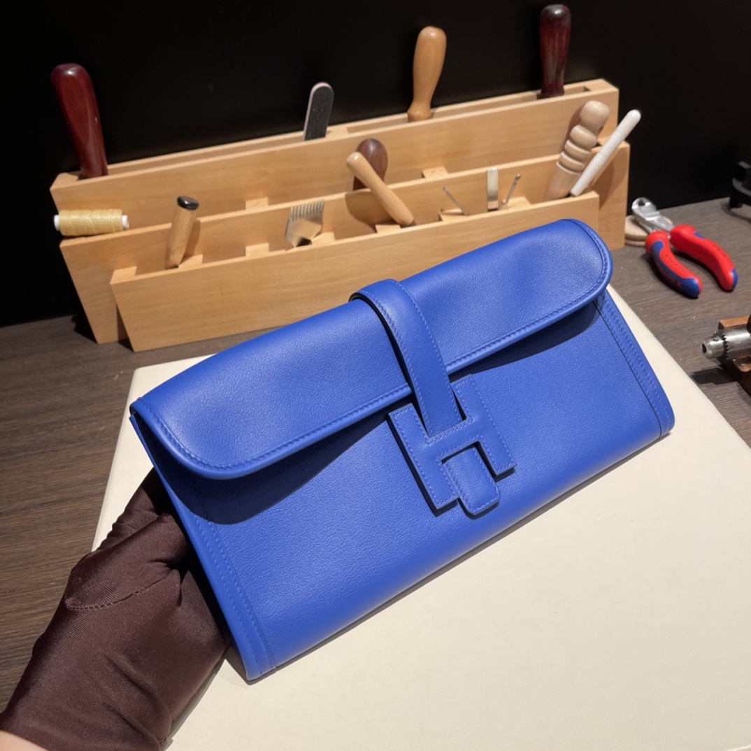 Hermès Jige Elan 29 Clutch Swift 7T/Blue Electric JigeElan-084 Fully Hand-Stitched