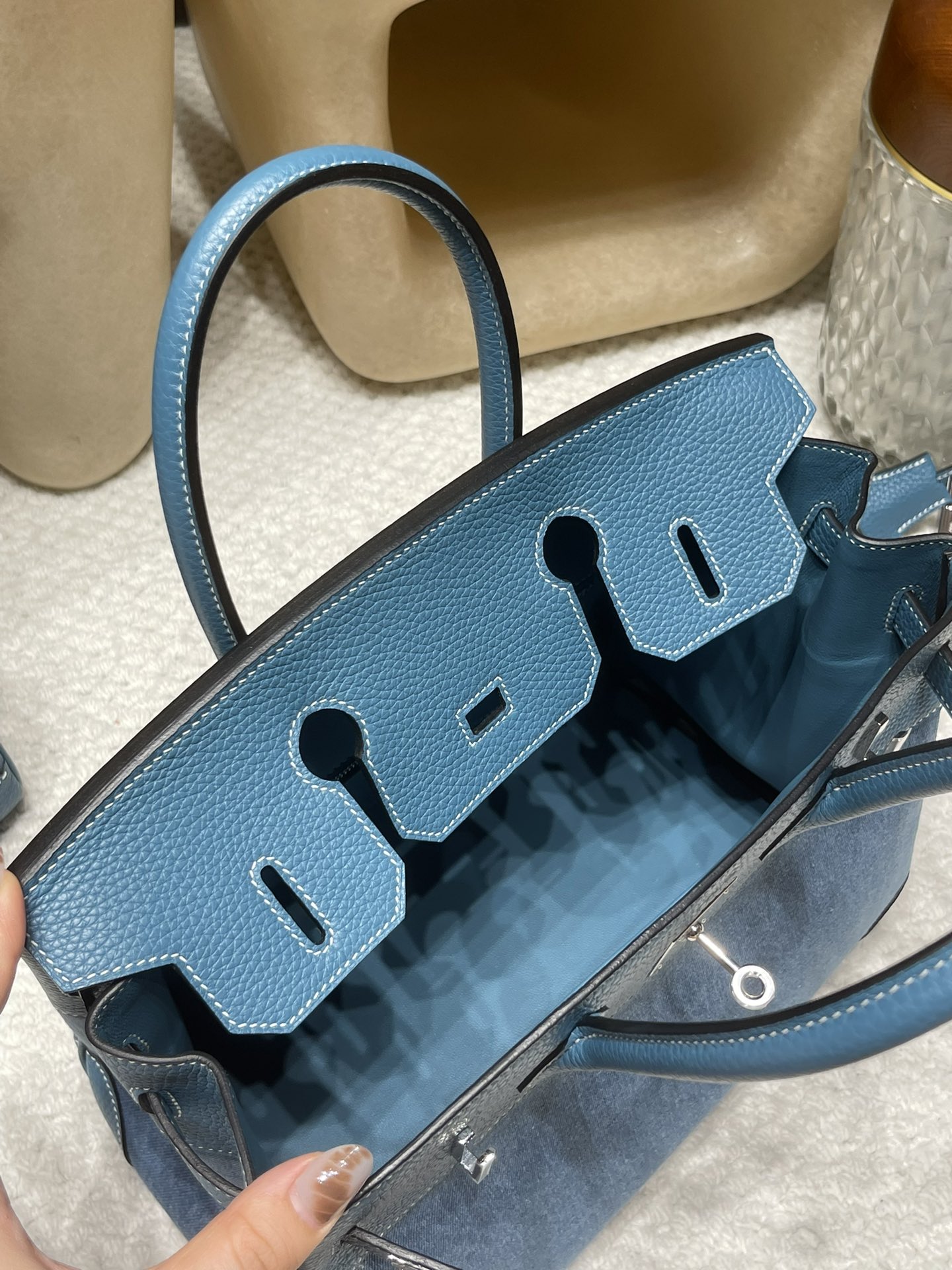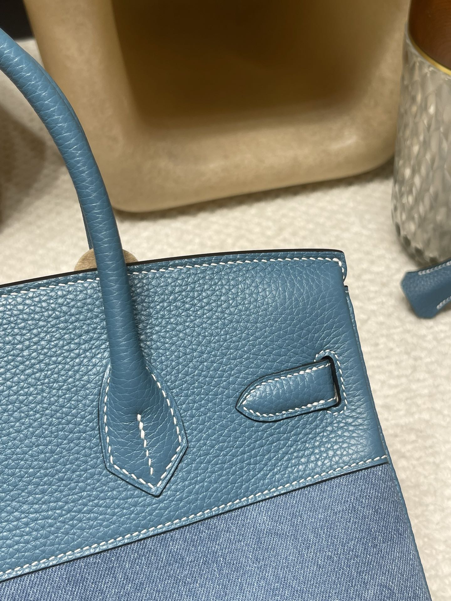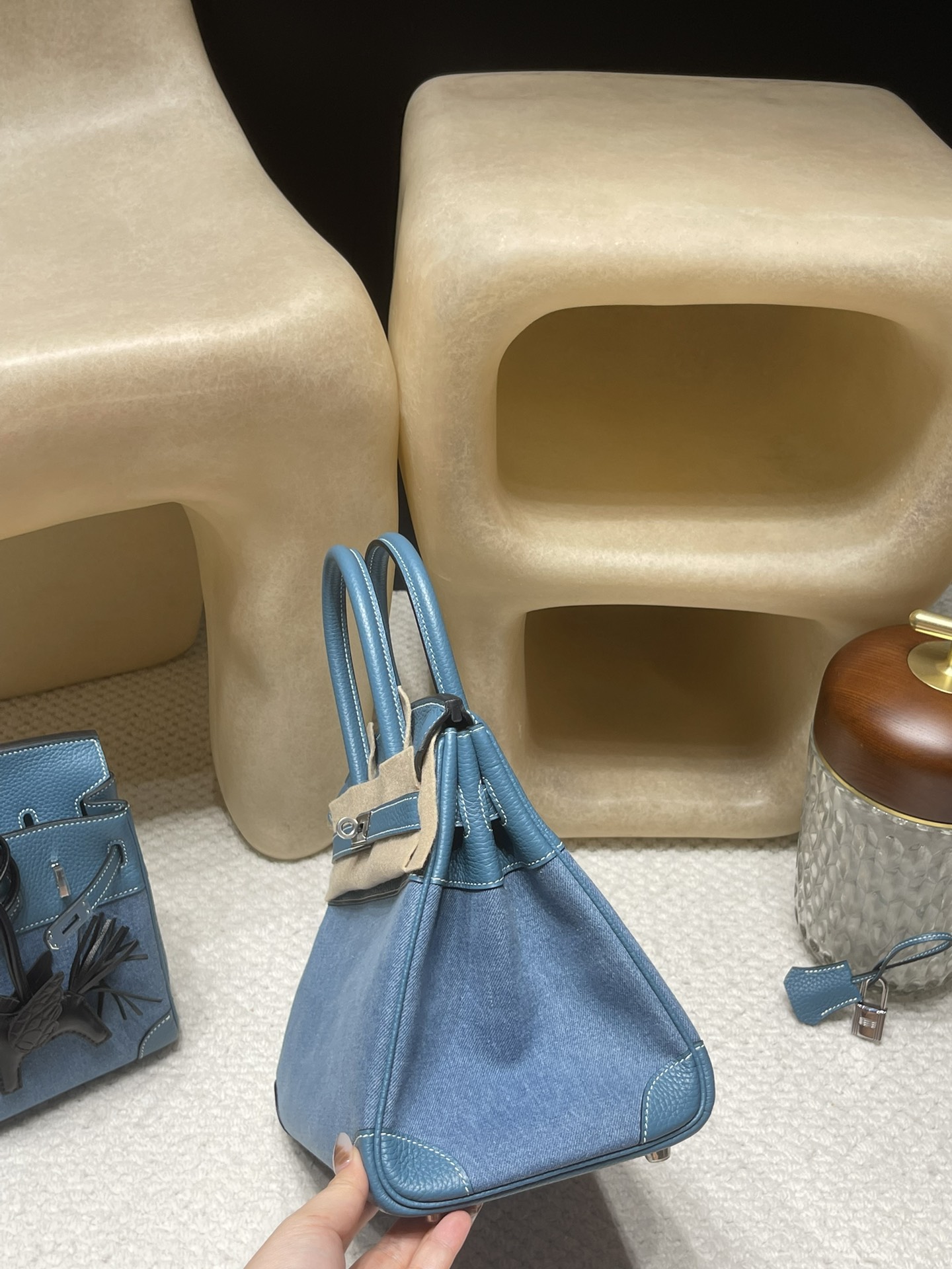 30cm Birkin (Trianon Canvas & Leather) – Color: Blue Jean – Known as a limited-edition model, this stylish design combines denim and leather to express both a vintage feel and modernity at the same time.