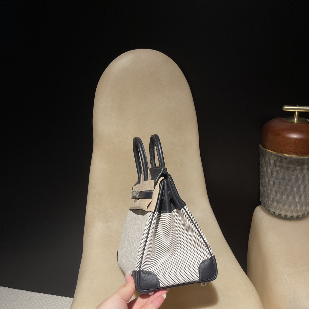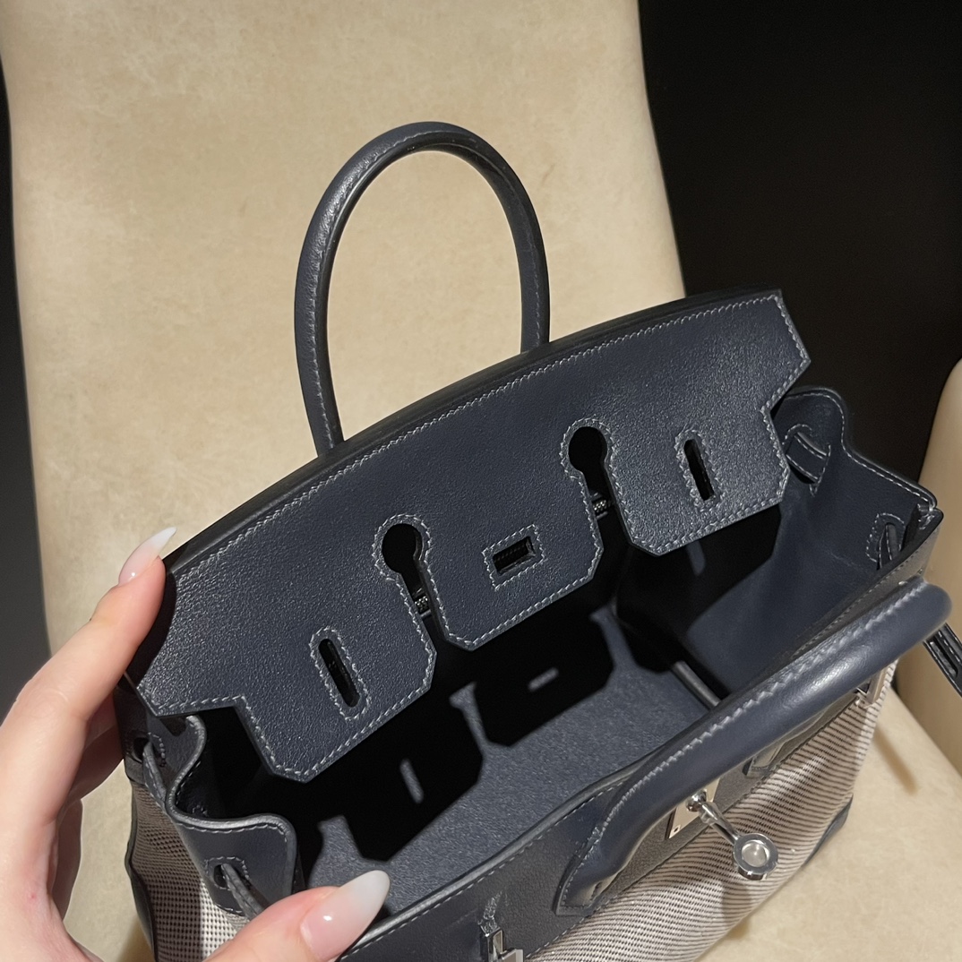 25cm Birkin (Canvas & Swift Leather) – Color: 2Z/Blue Nuit – The canvas part gives a youthful impression and is lighter than full-leather versions.