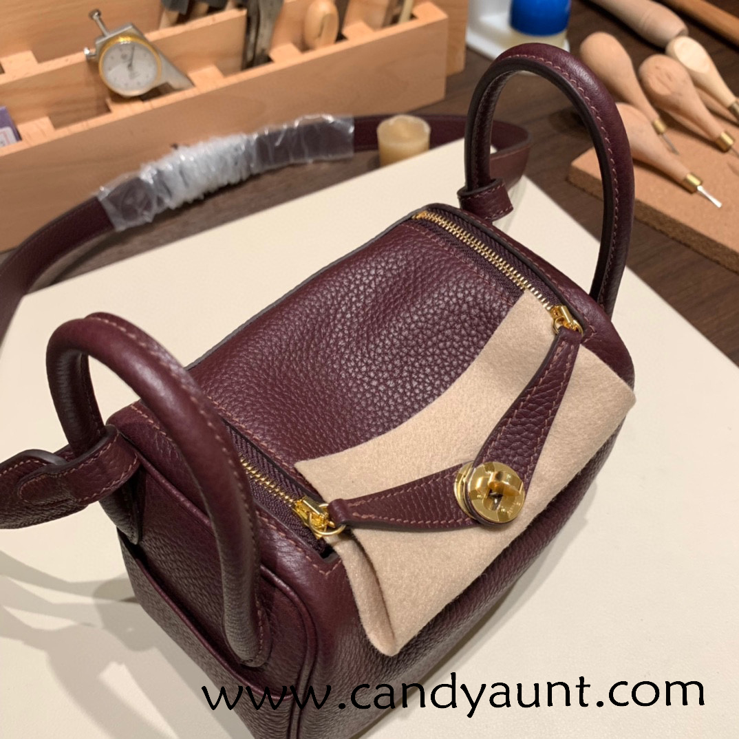 Hermès Lindy Mini × Rouge SellierFull Handmade