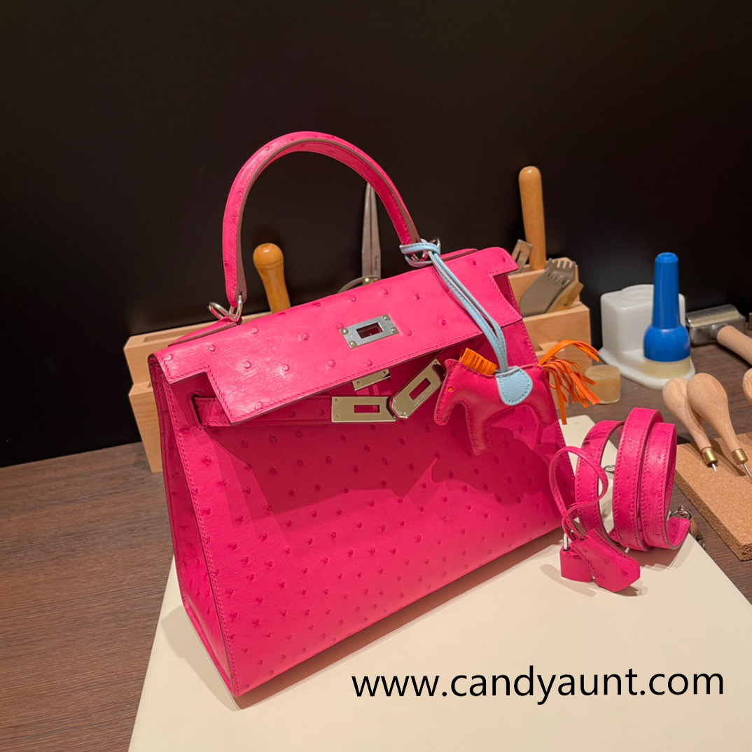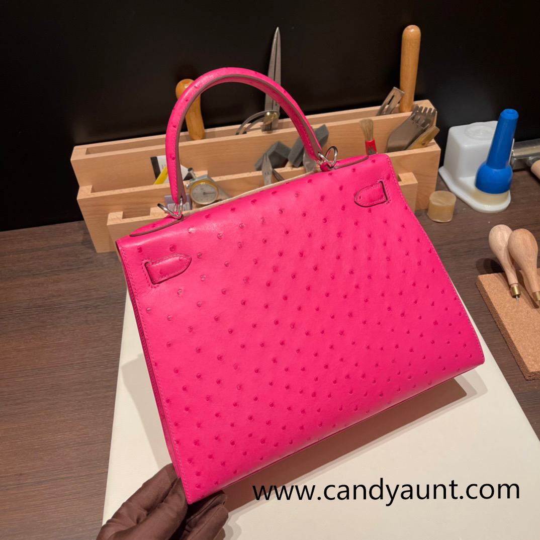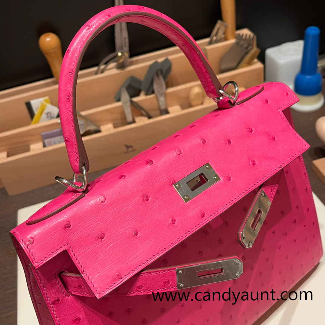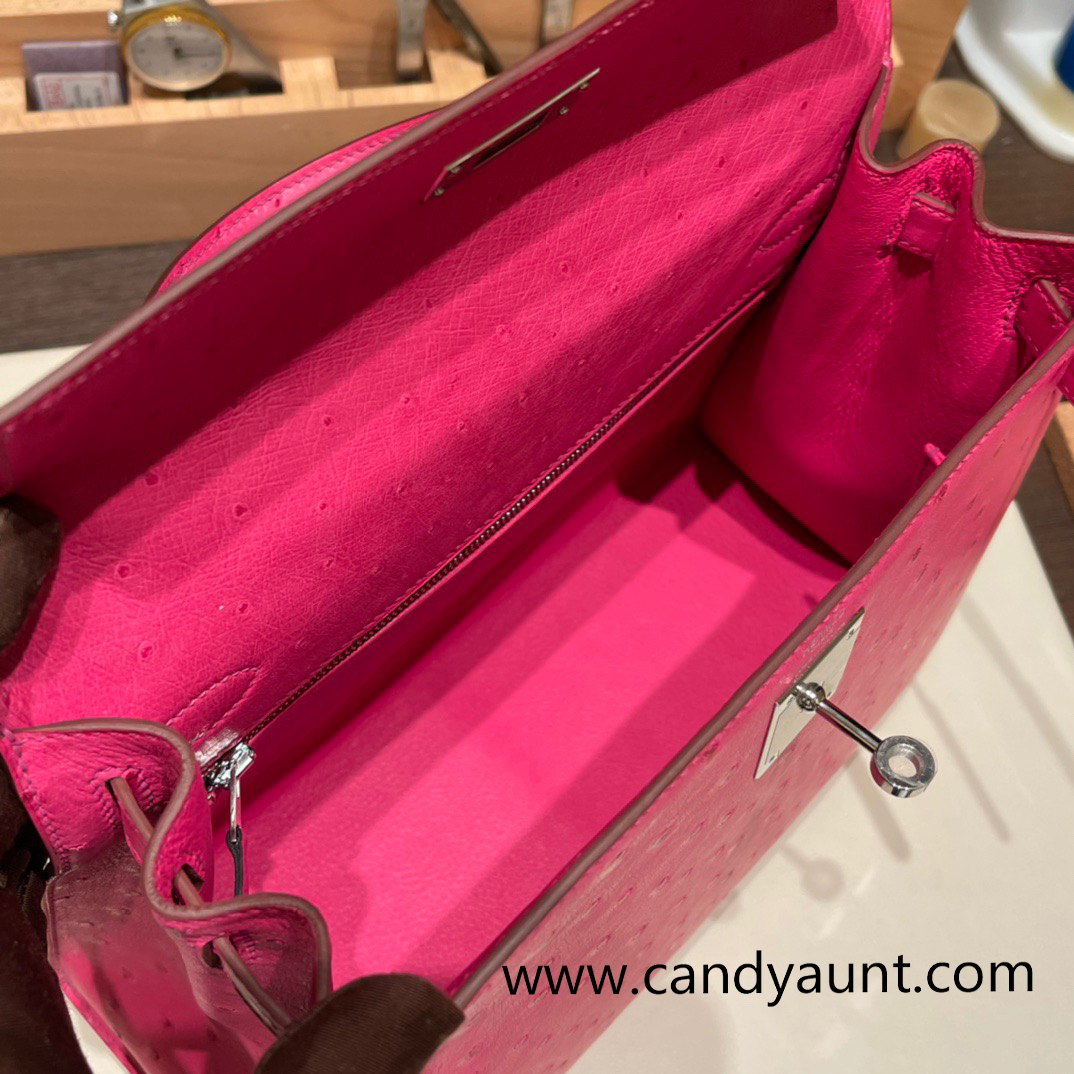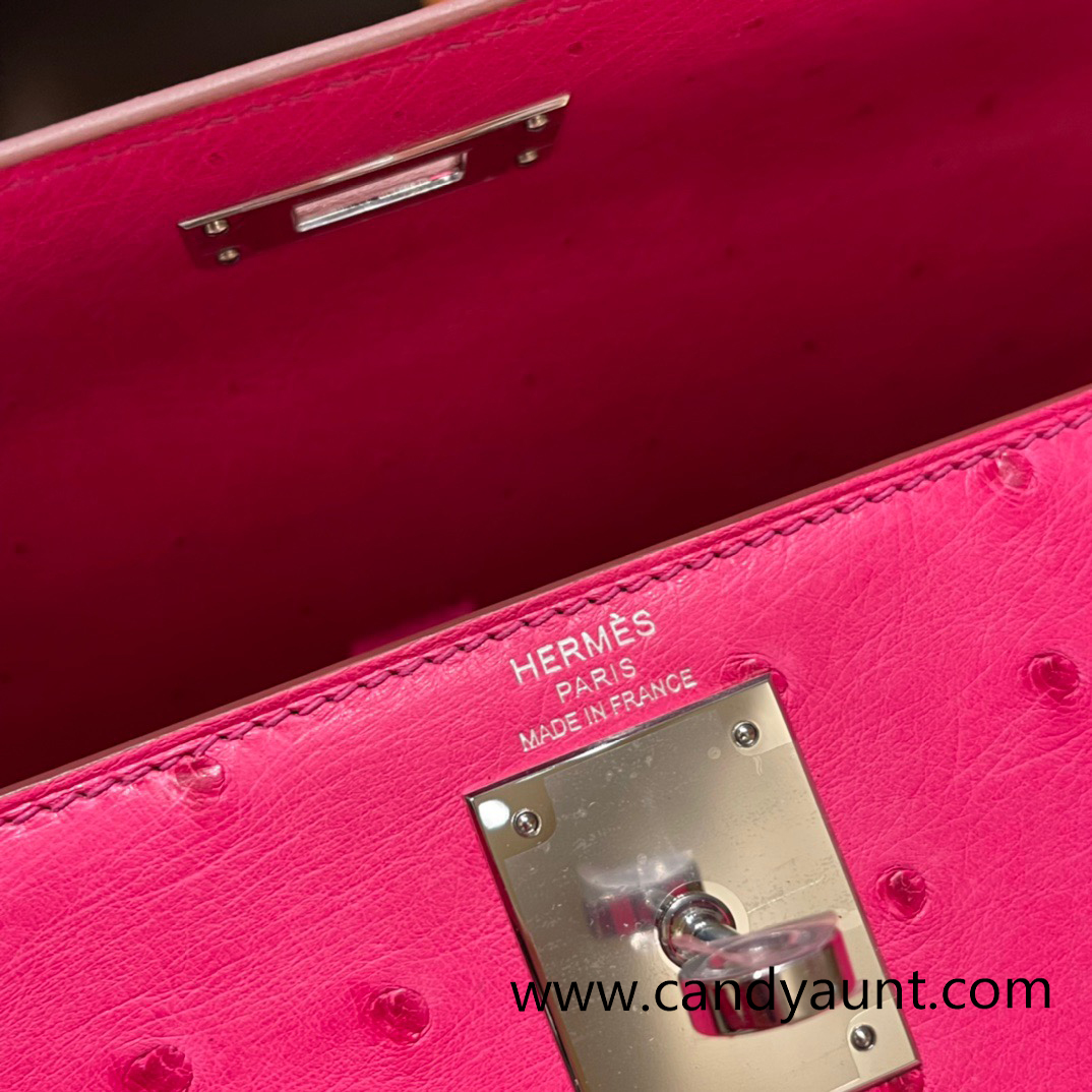 Hermes Kelly 28CM Ostrich 8T /Rose Candy SilverHardware FullHandmade 007