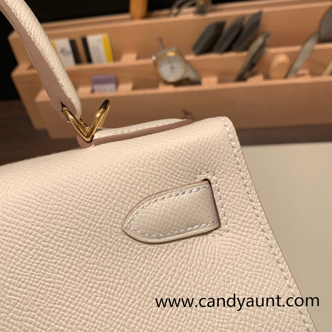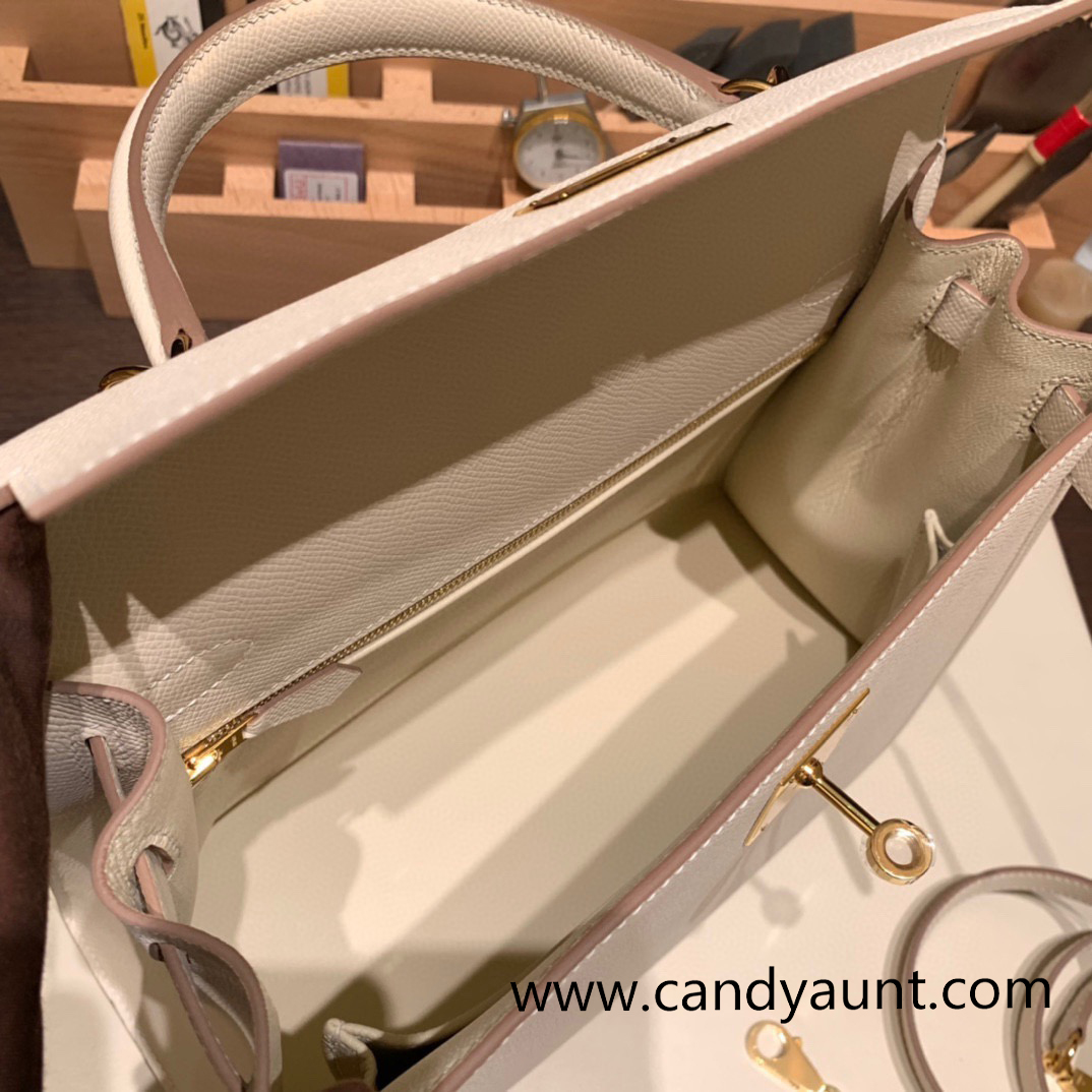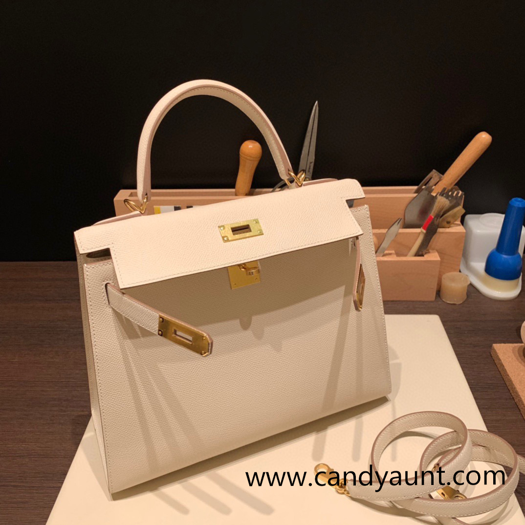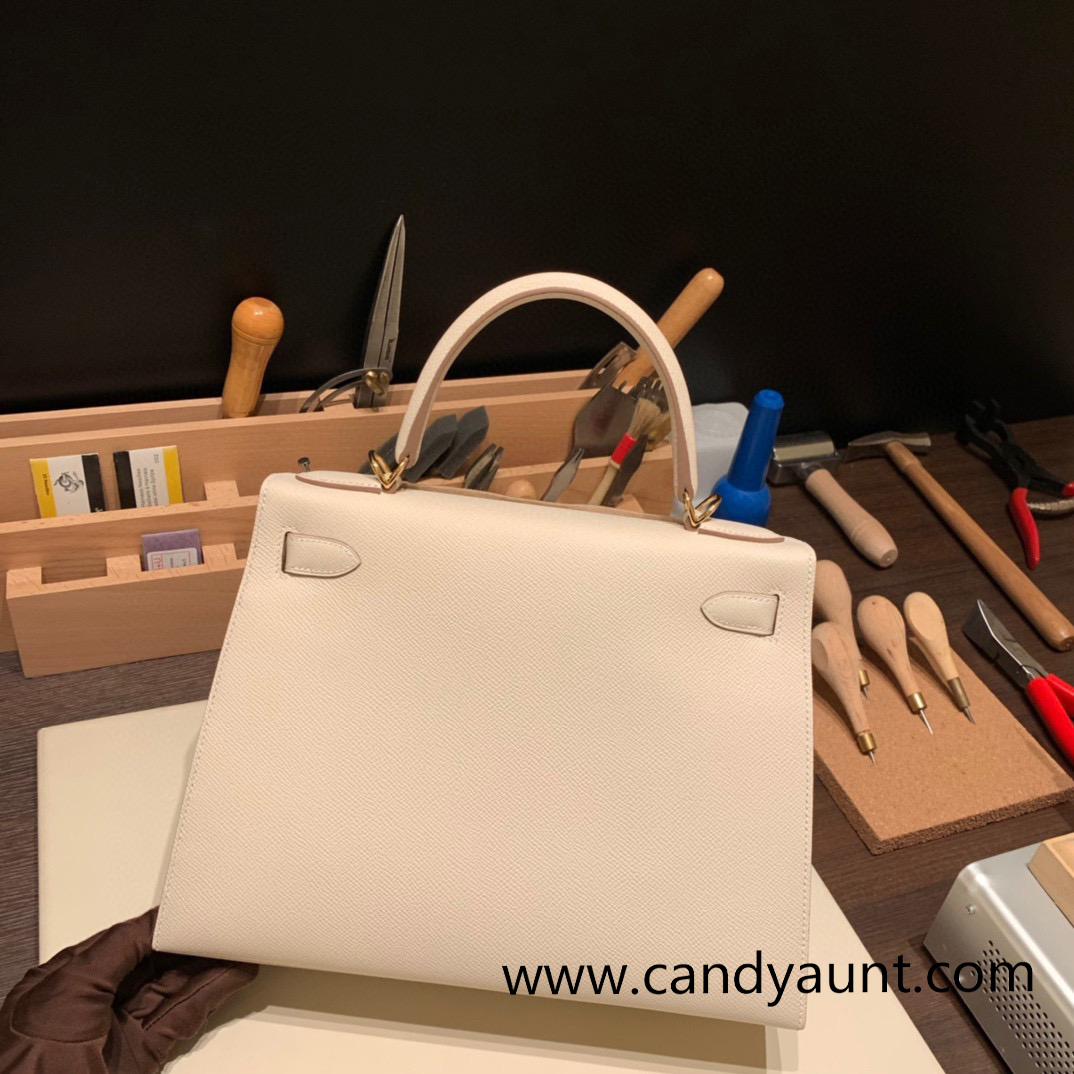 Hermes Kelly 28CM Epsom 10 /Craie GoldHardware FullHandmade 015