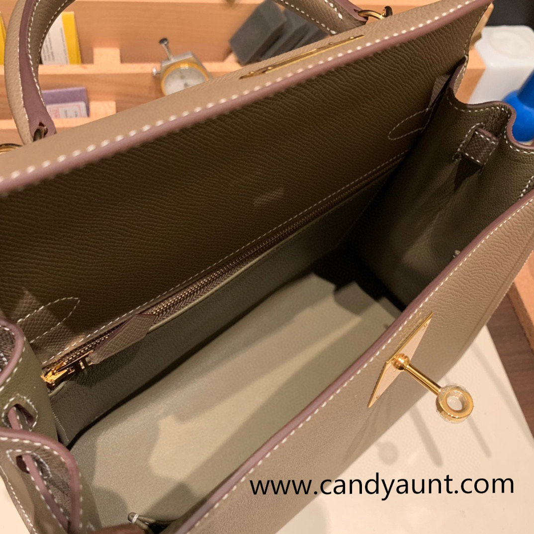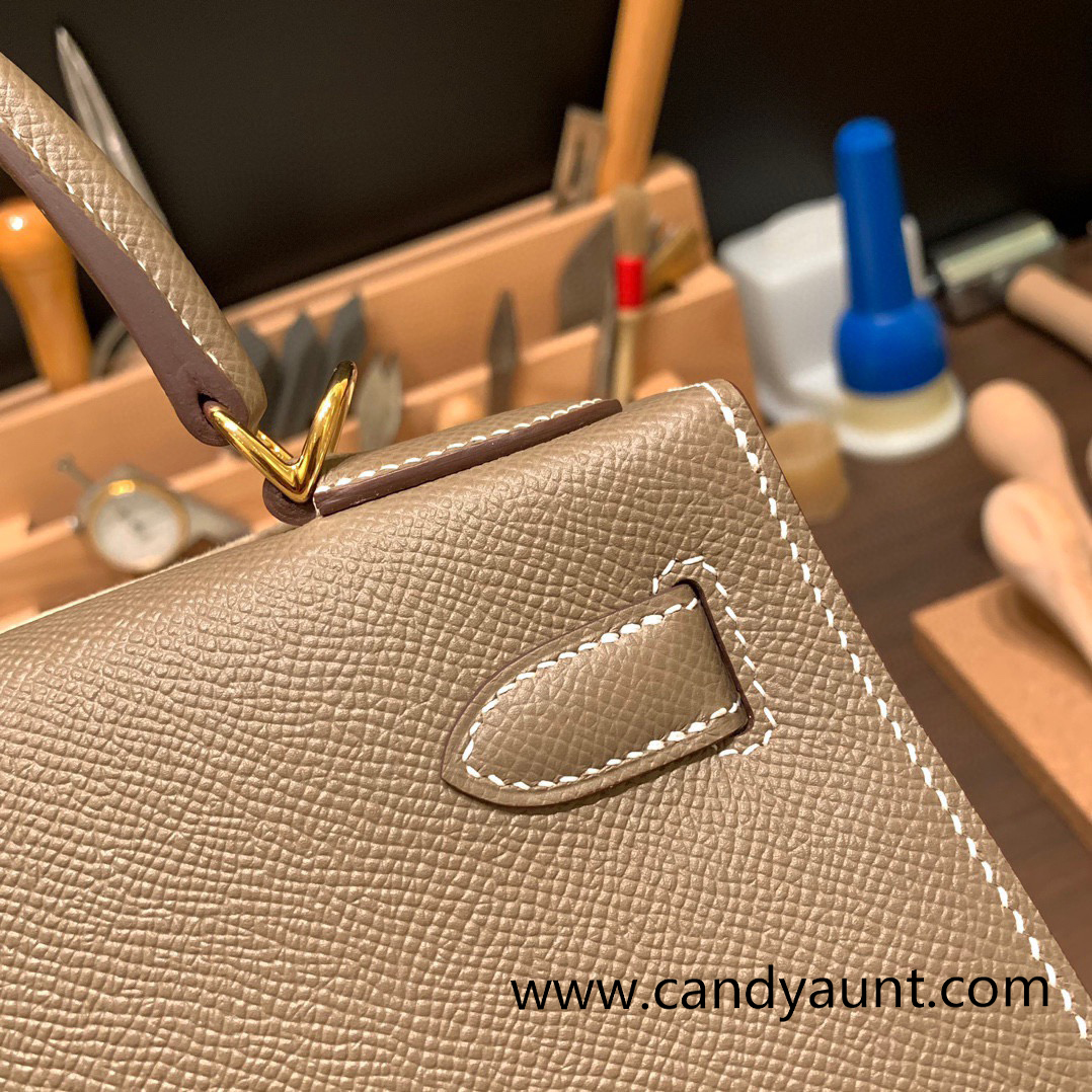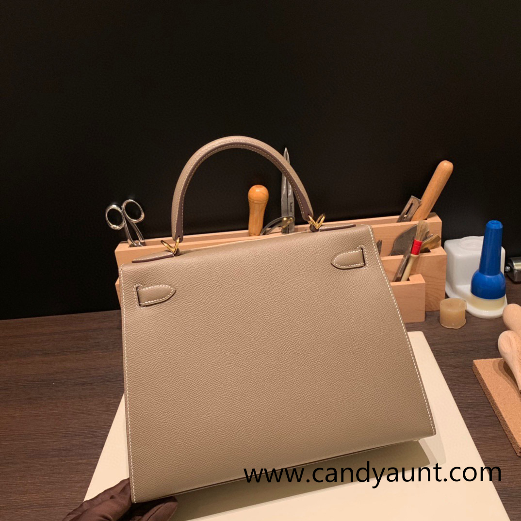 Hermes Kelly 28CM Epsom 18 /Étoupe Grey GoldHardware FullHandmade 028