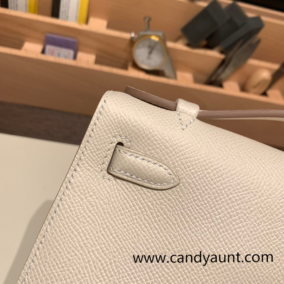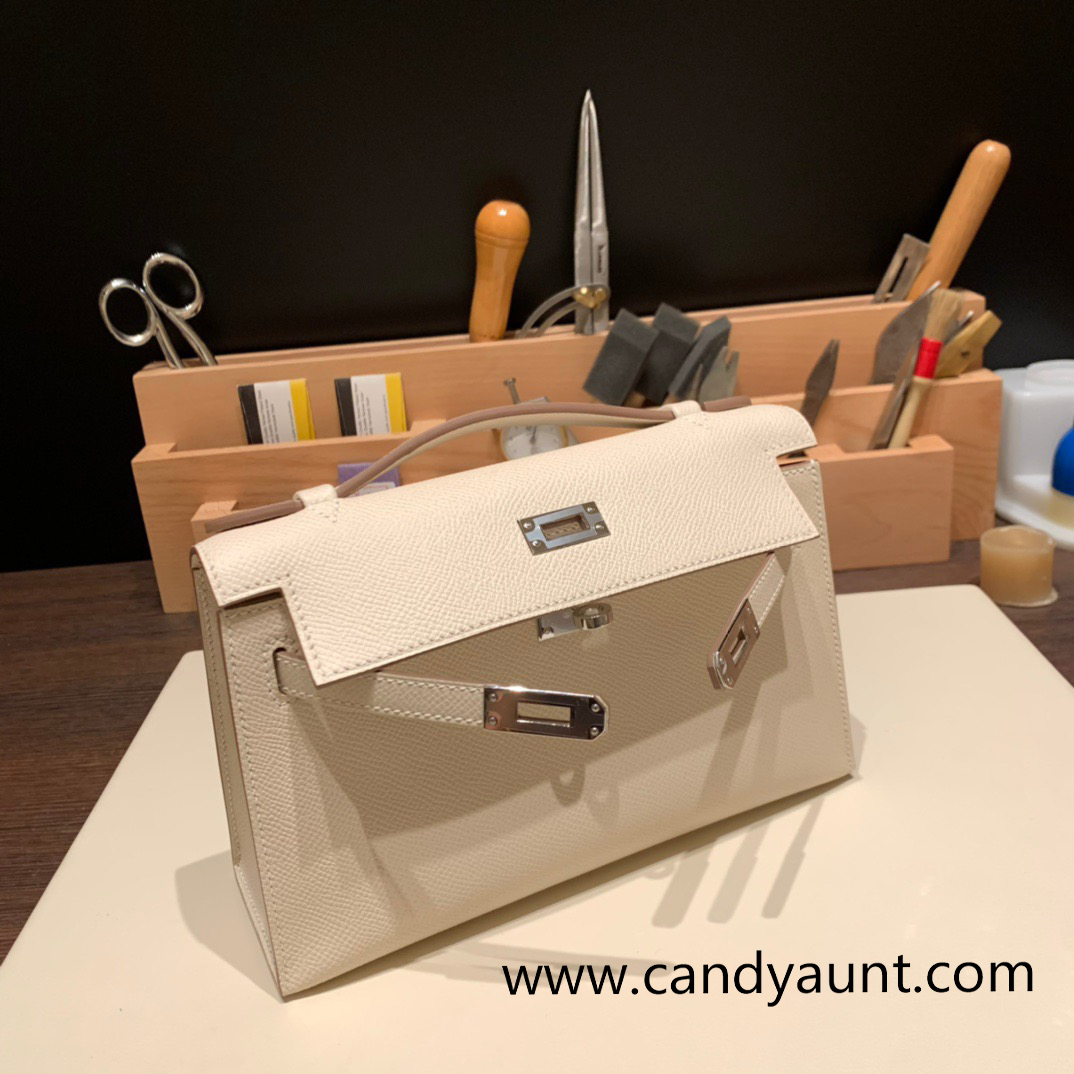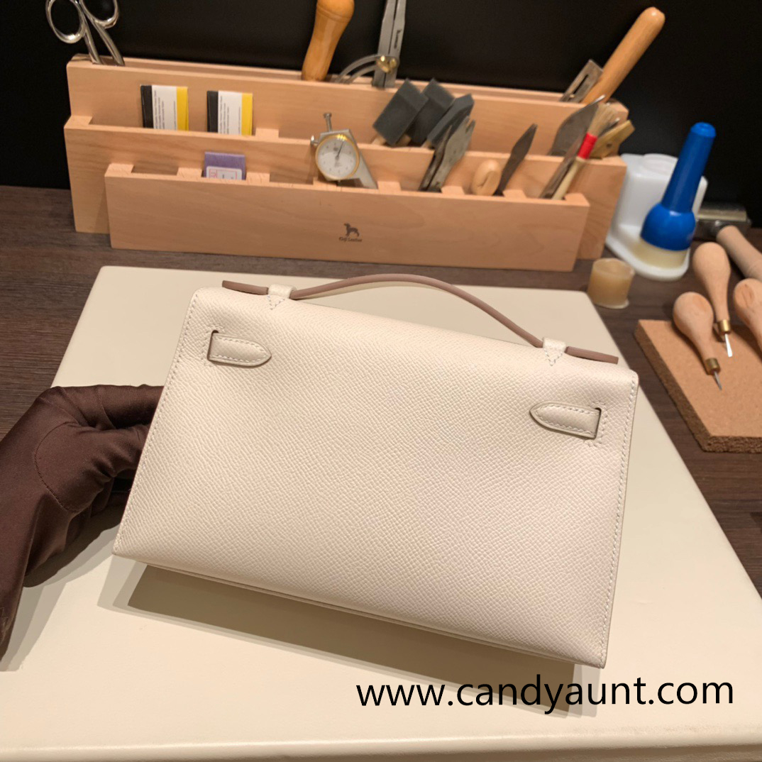 10 /Craie Gold Hardware kelly pochette Epsom