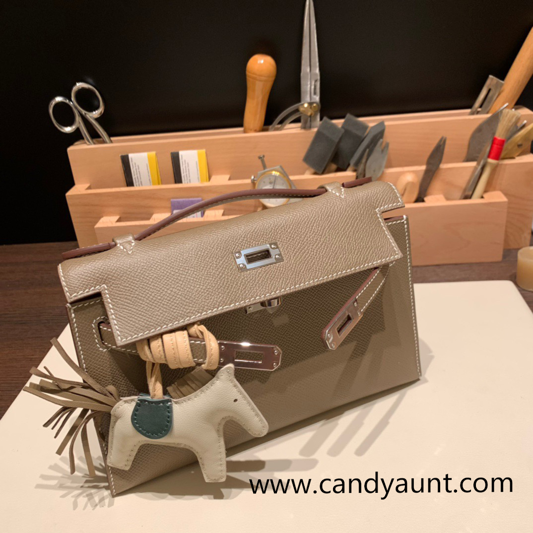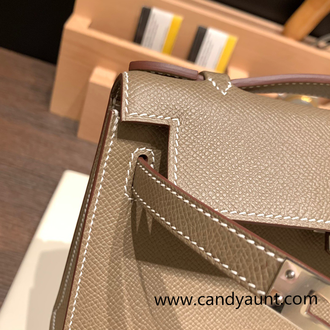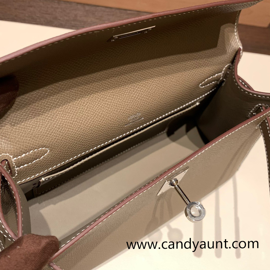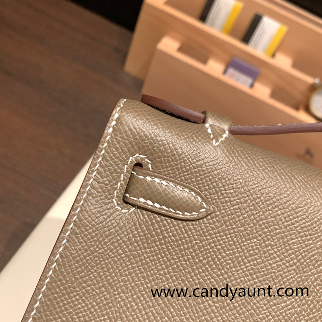 18/Étoupe Grey Silver Hardware  kelly pochette  Epsom